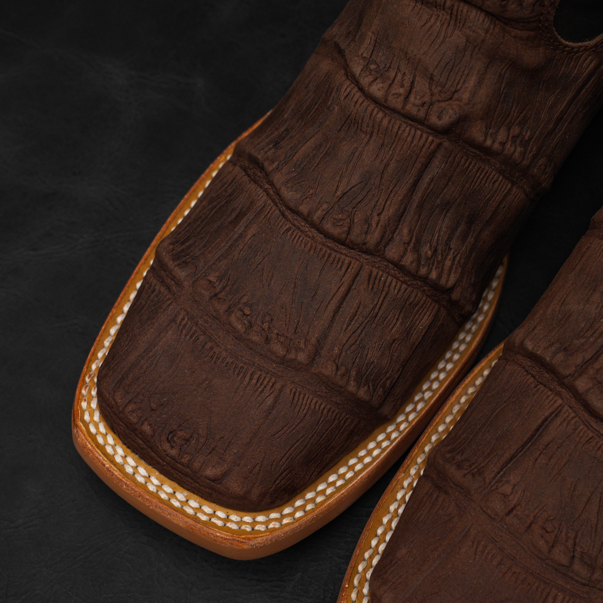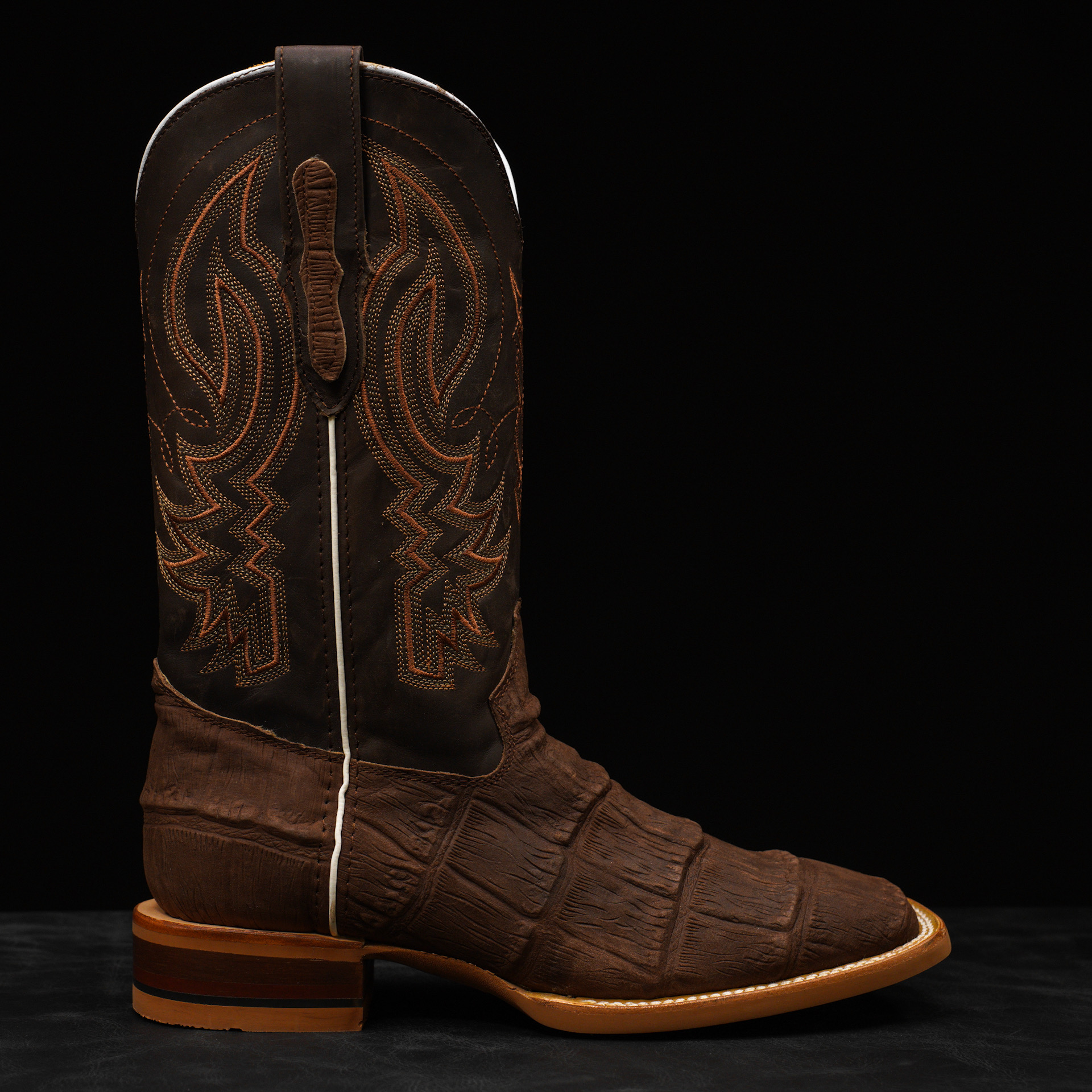 Matte Brown Giant Alligator Belly – Square Toe