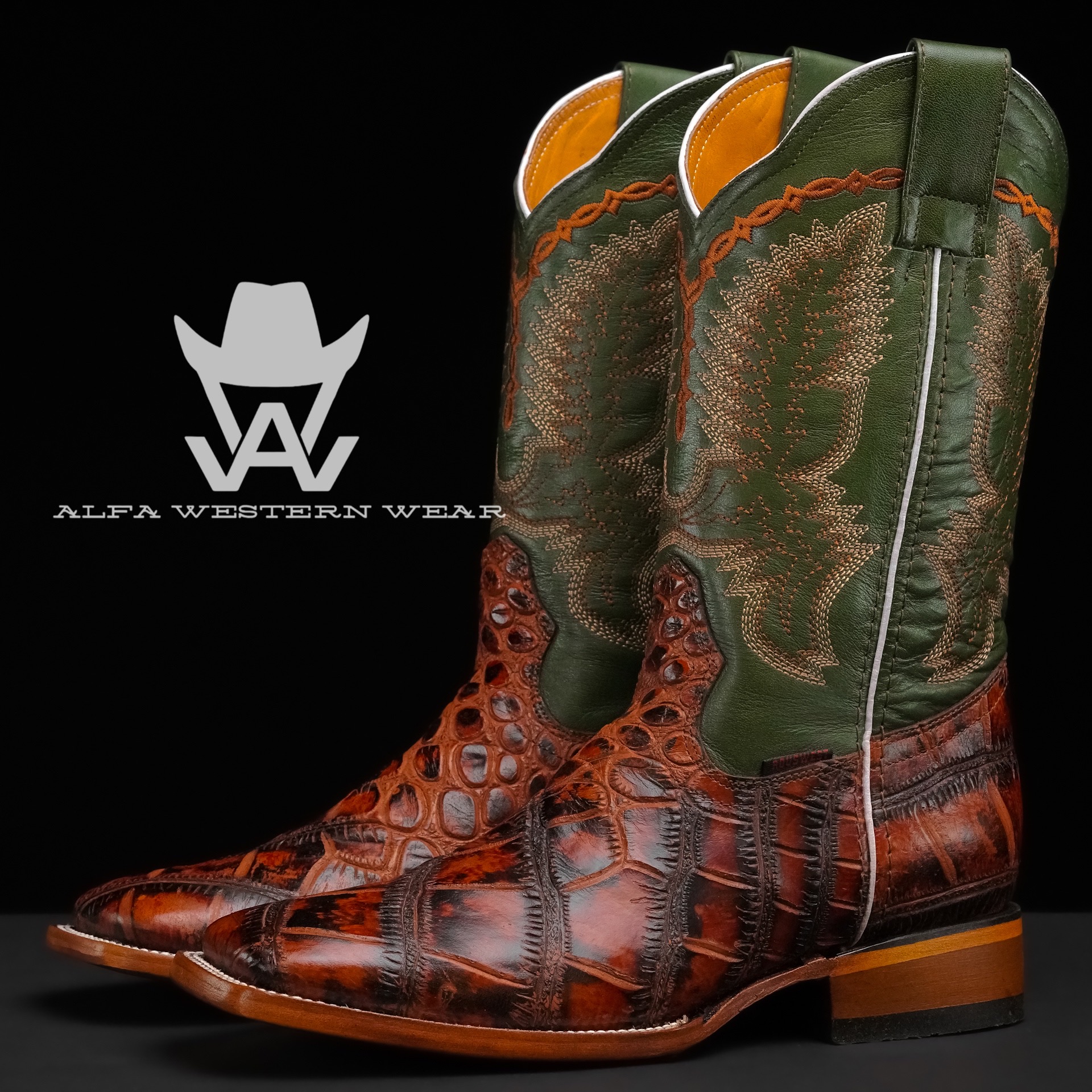 Men’s Handmade Cognac American Alligator – Square Toe