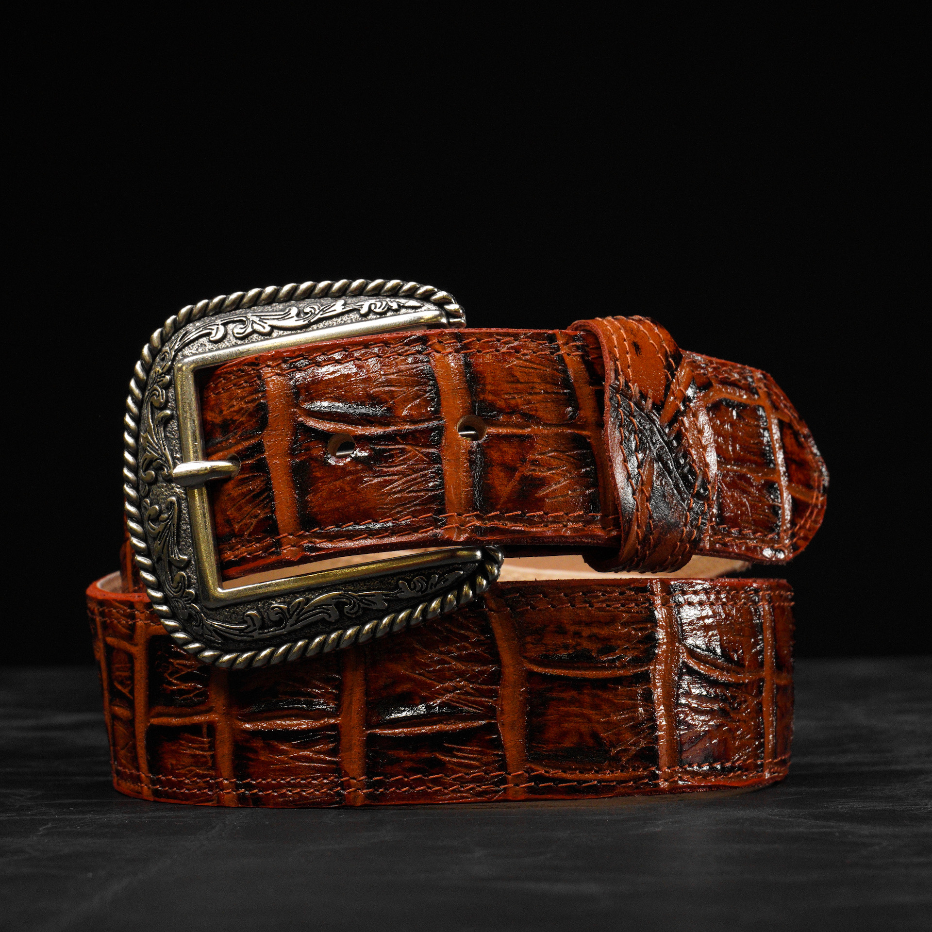 Cognac Alligator Belly Belt