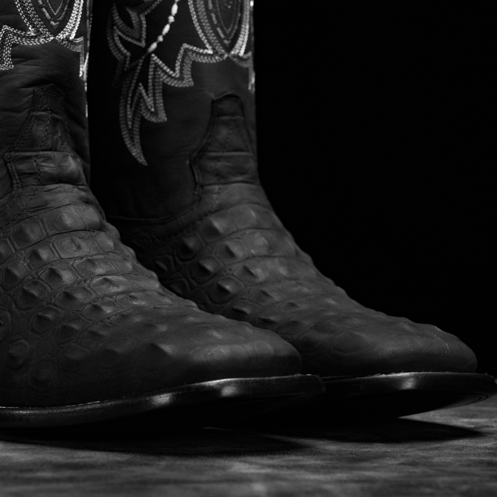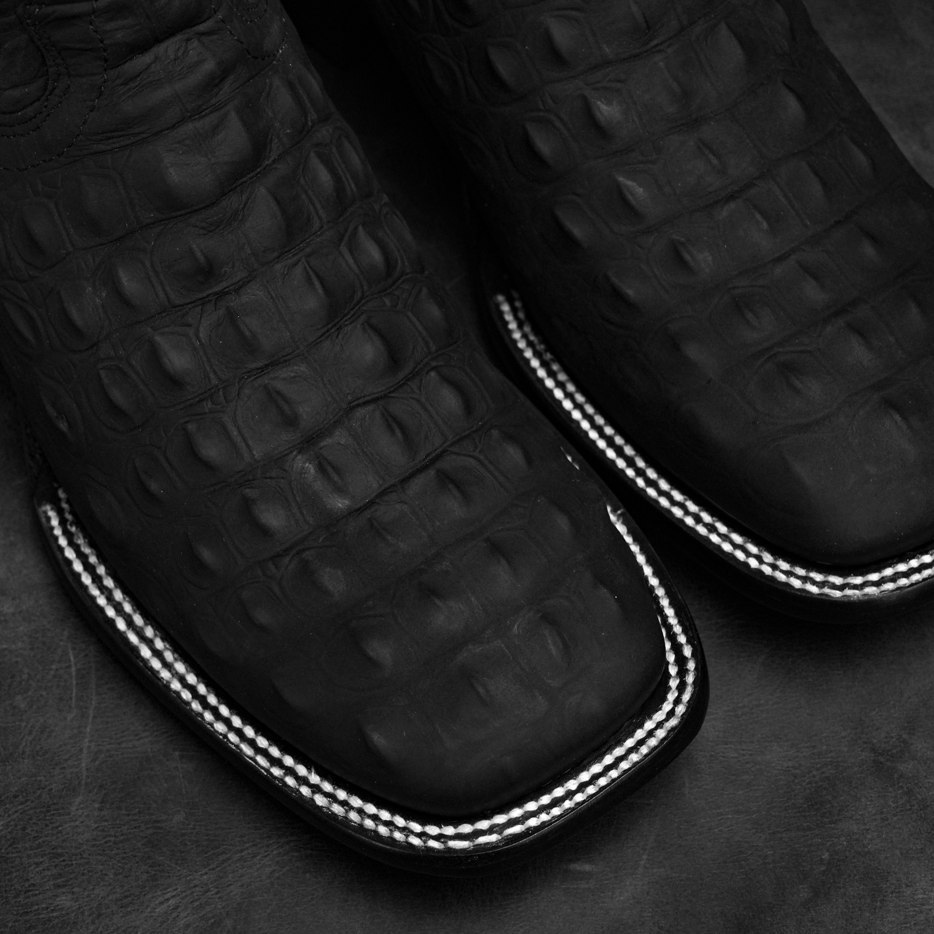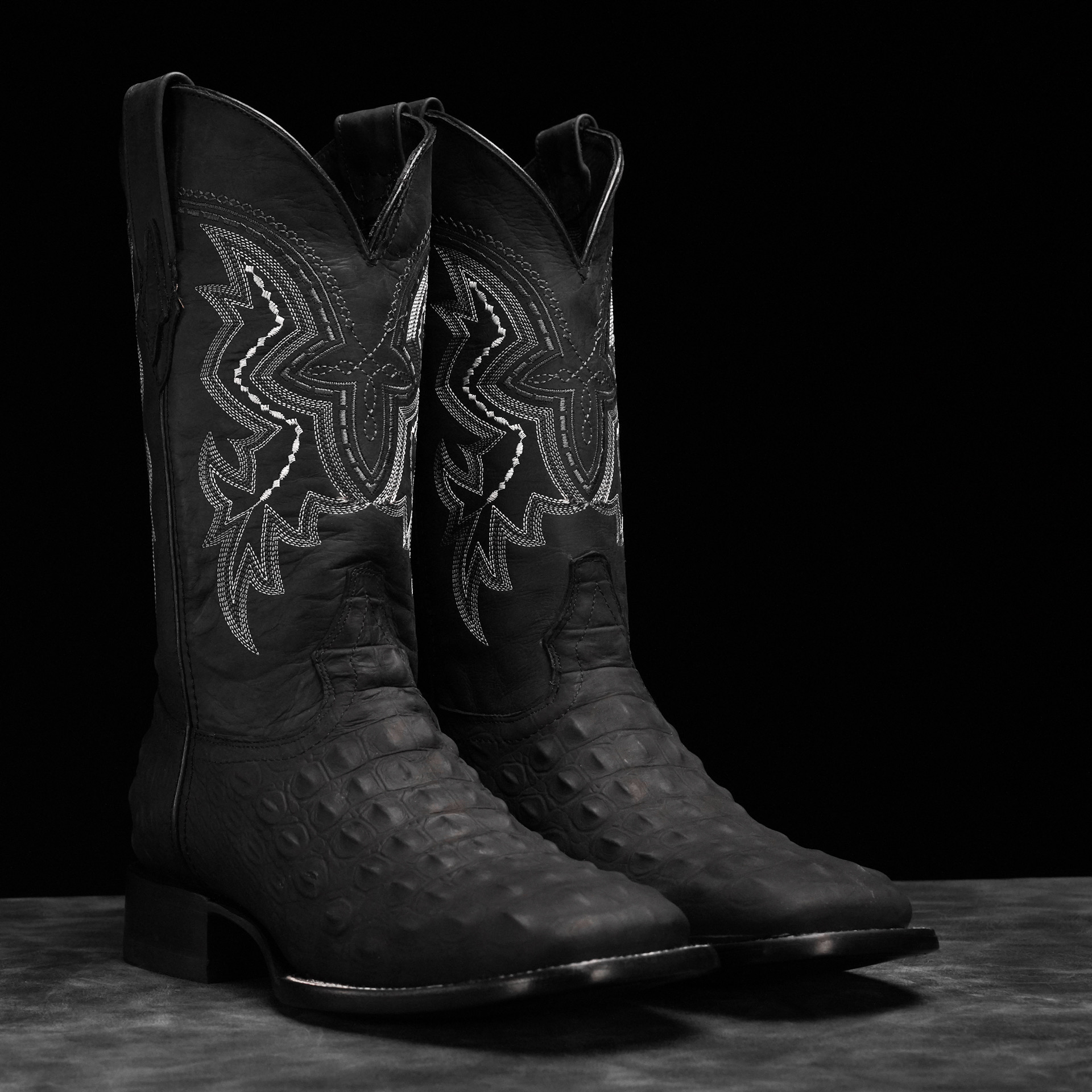 Matte Black Caiman Horn Back – Square Toe