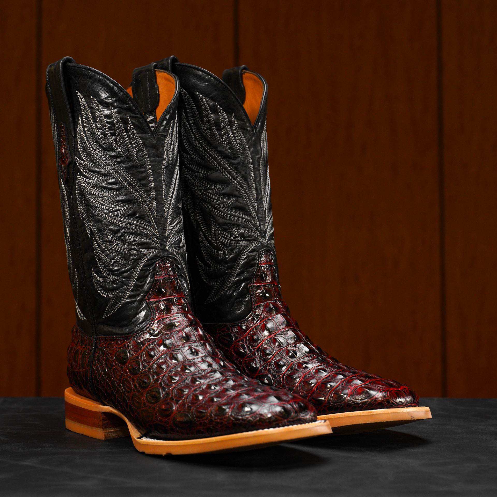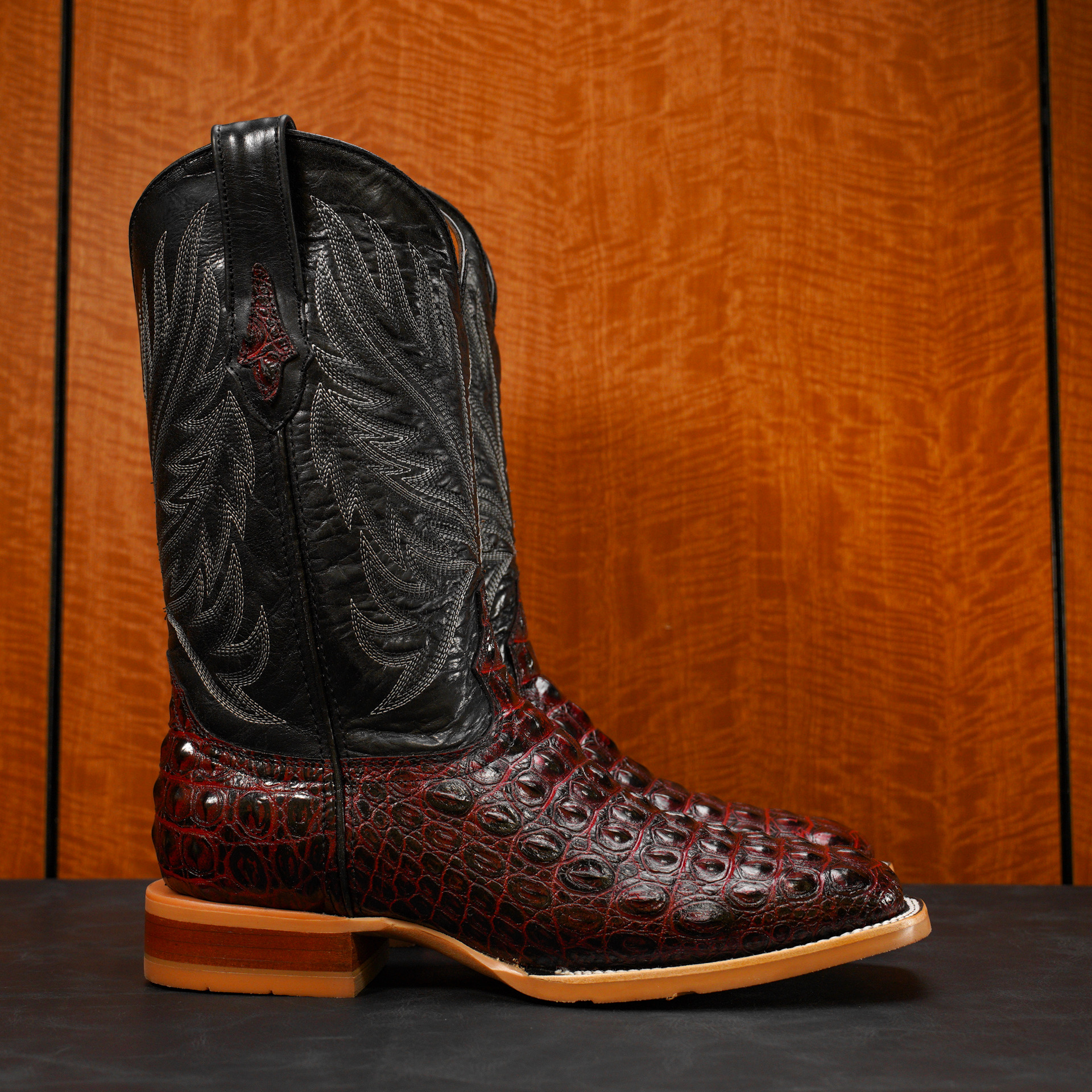 Black Cherry Caiman Horn Back – Square Toe