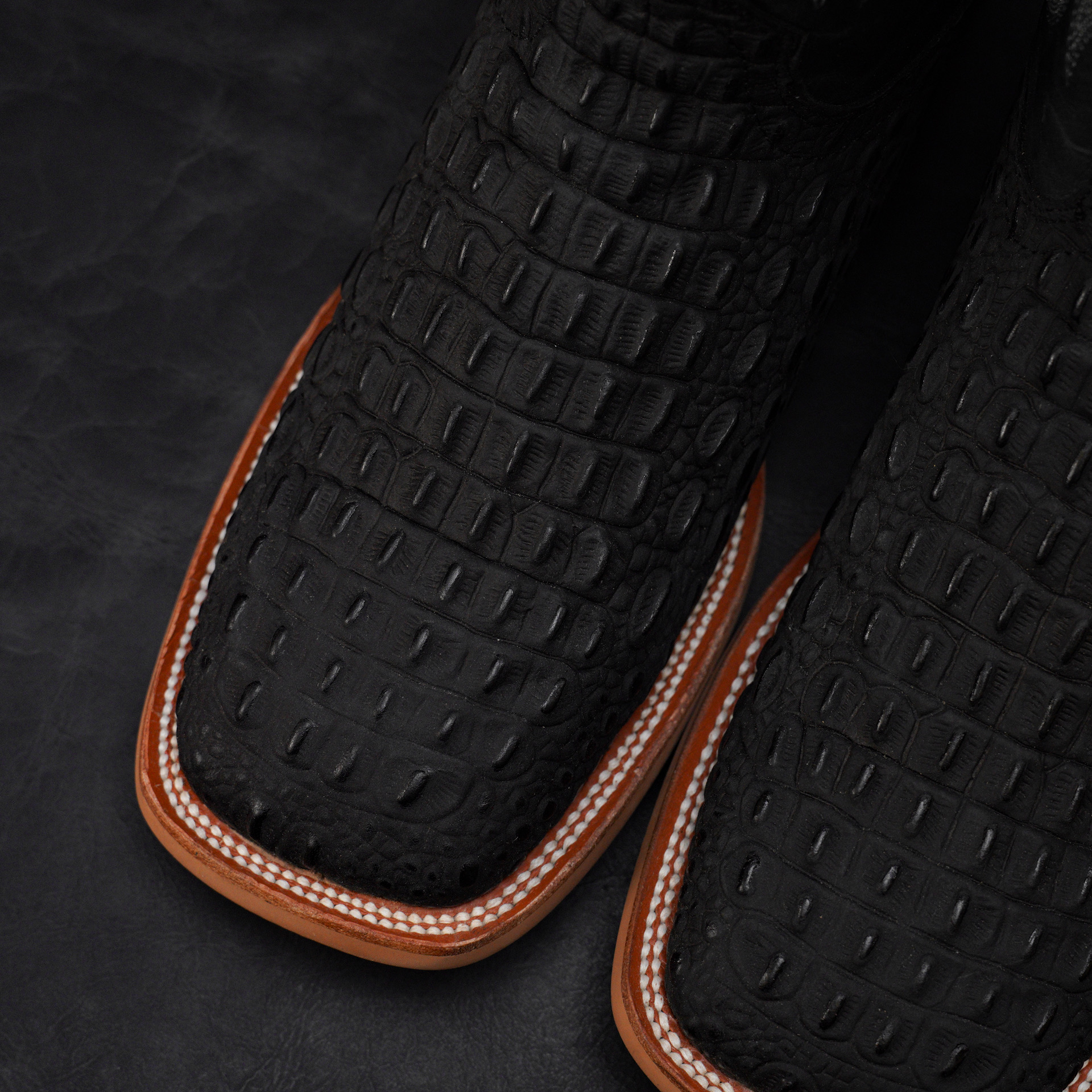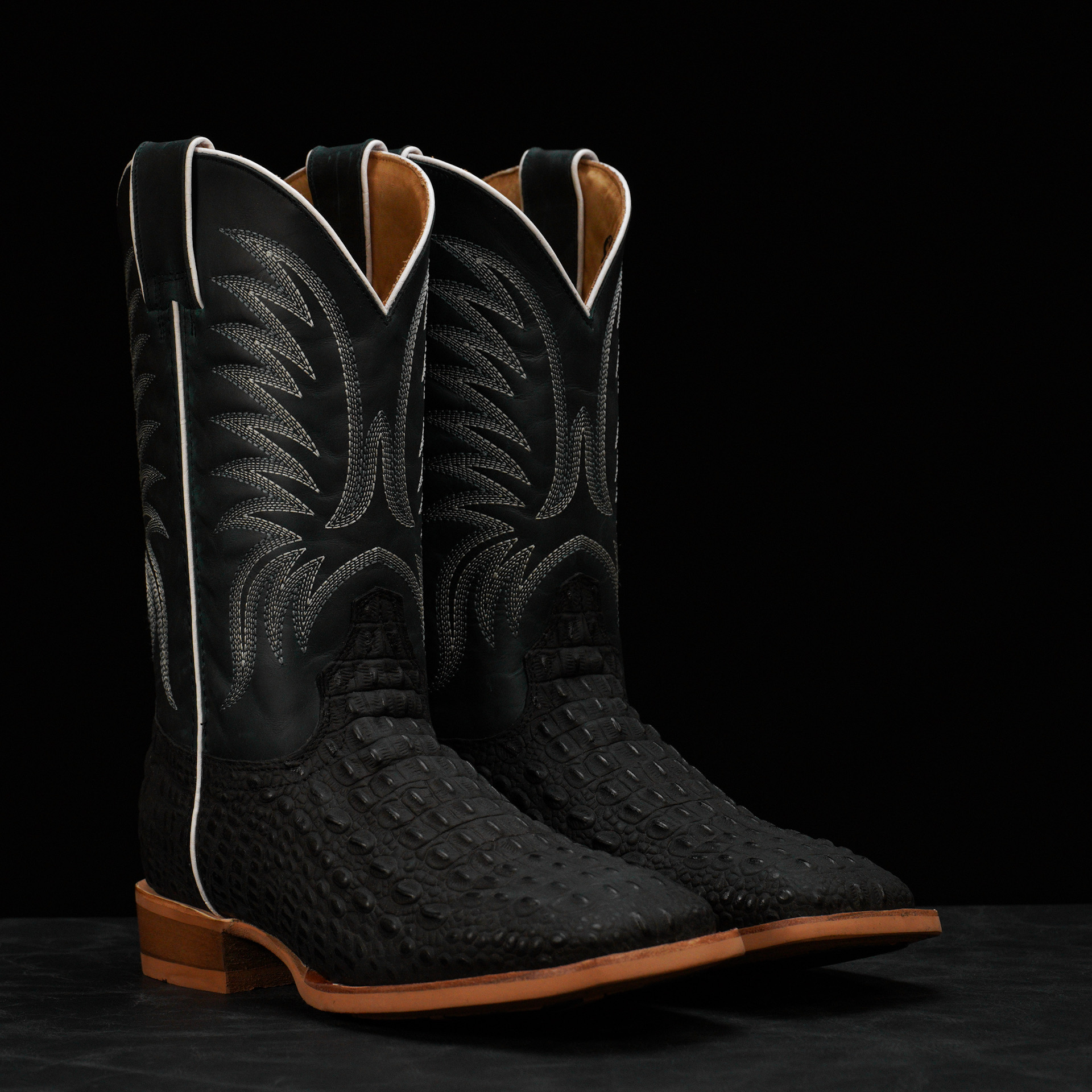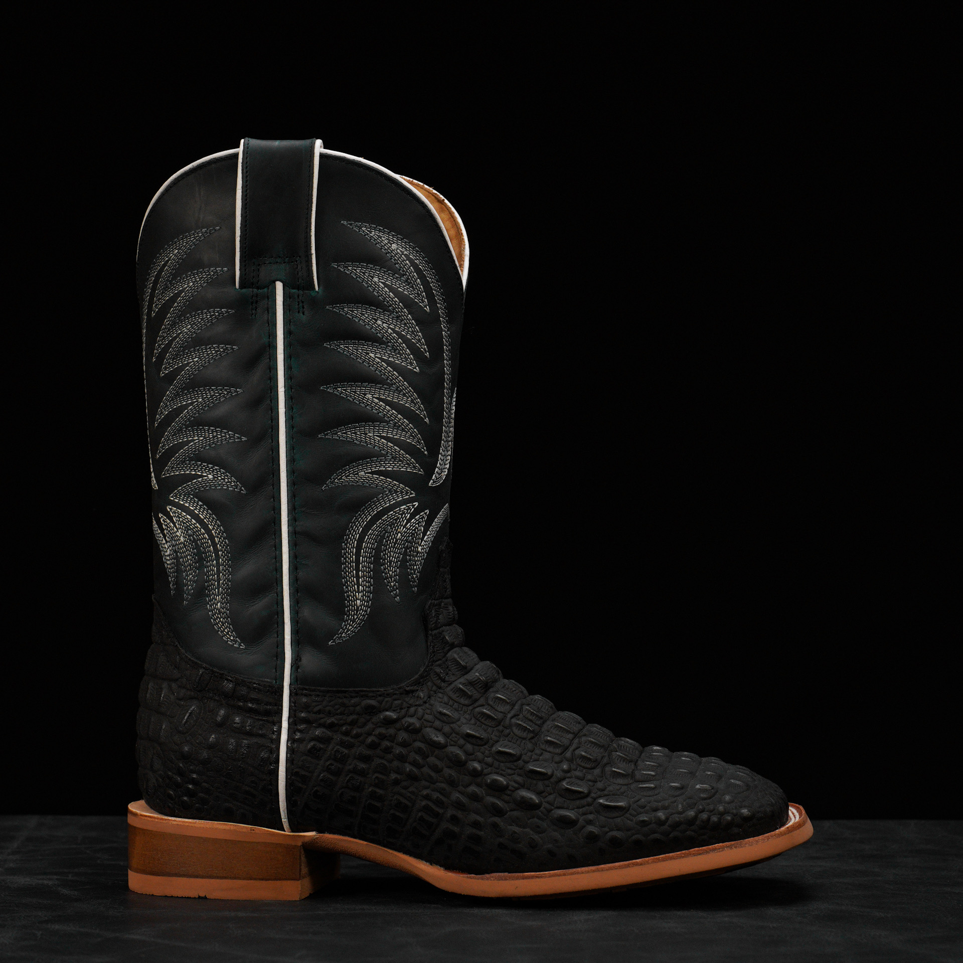Matte Black Caiman Horn Back – Square Toe
