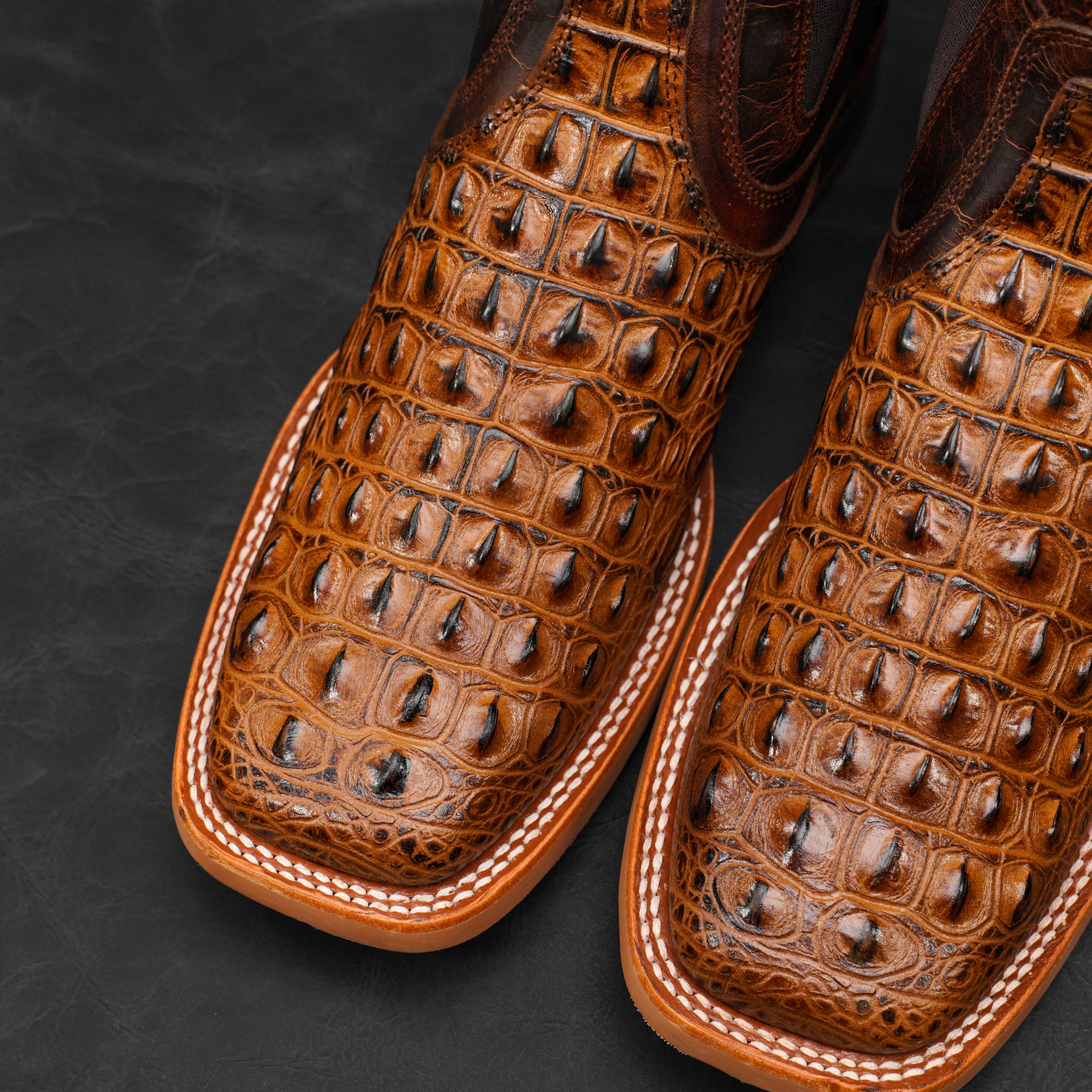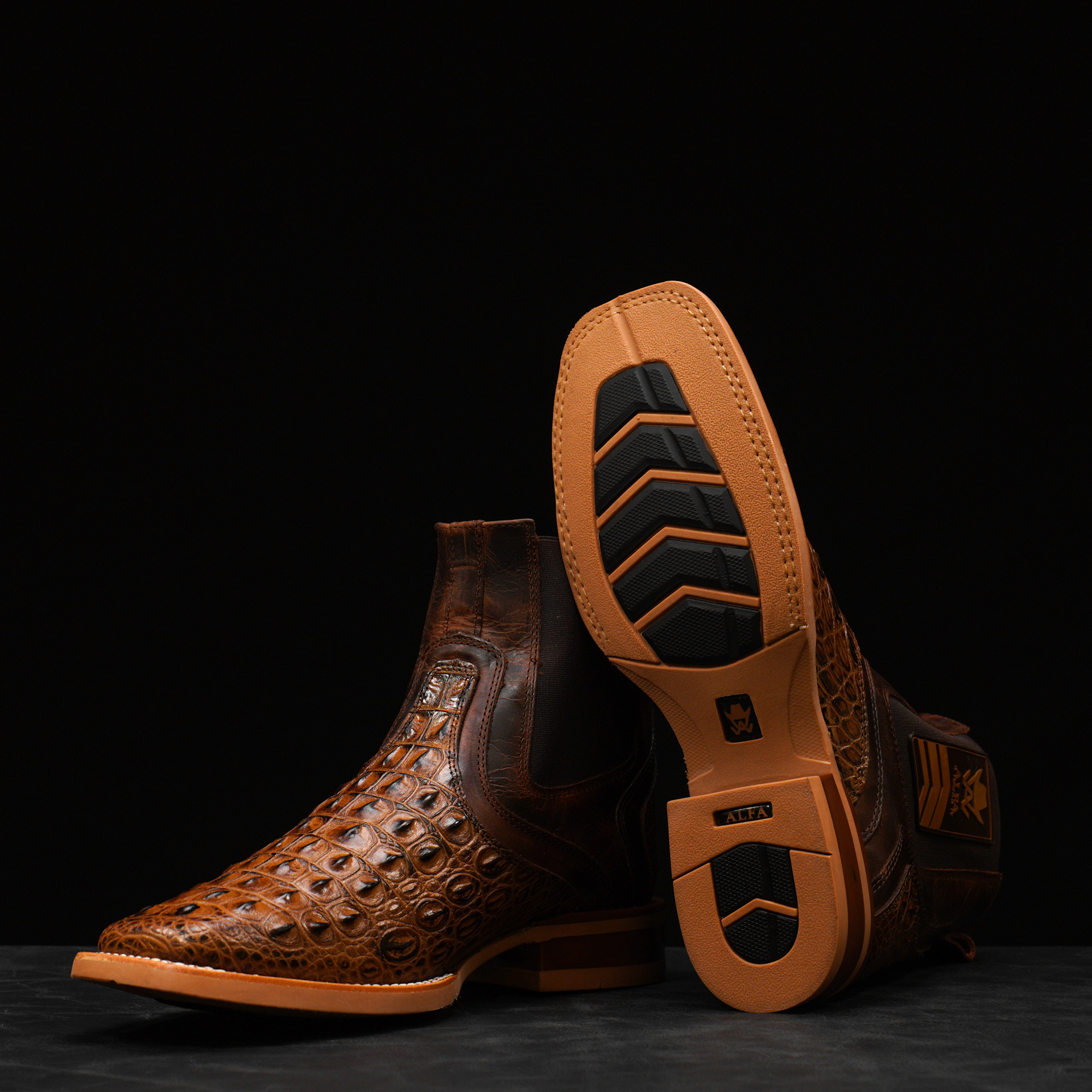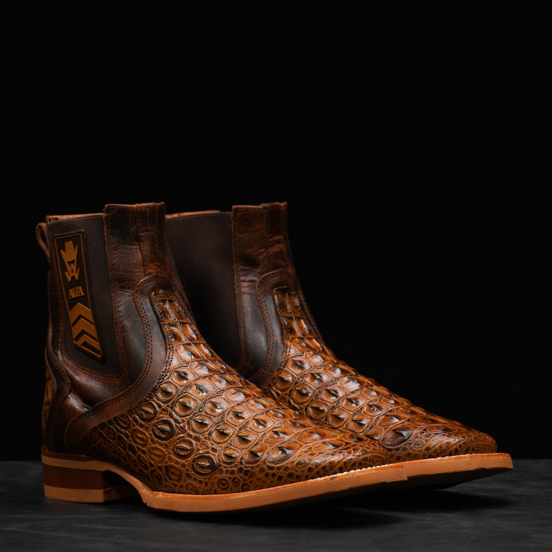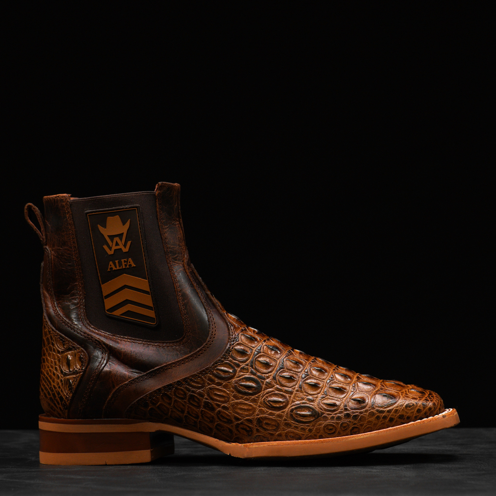 Honey Caiman Horn Back Chelsea Boot – Square Toe
