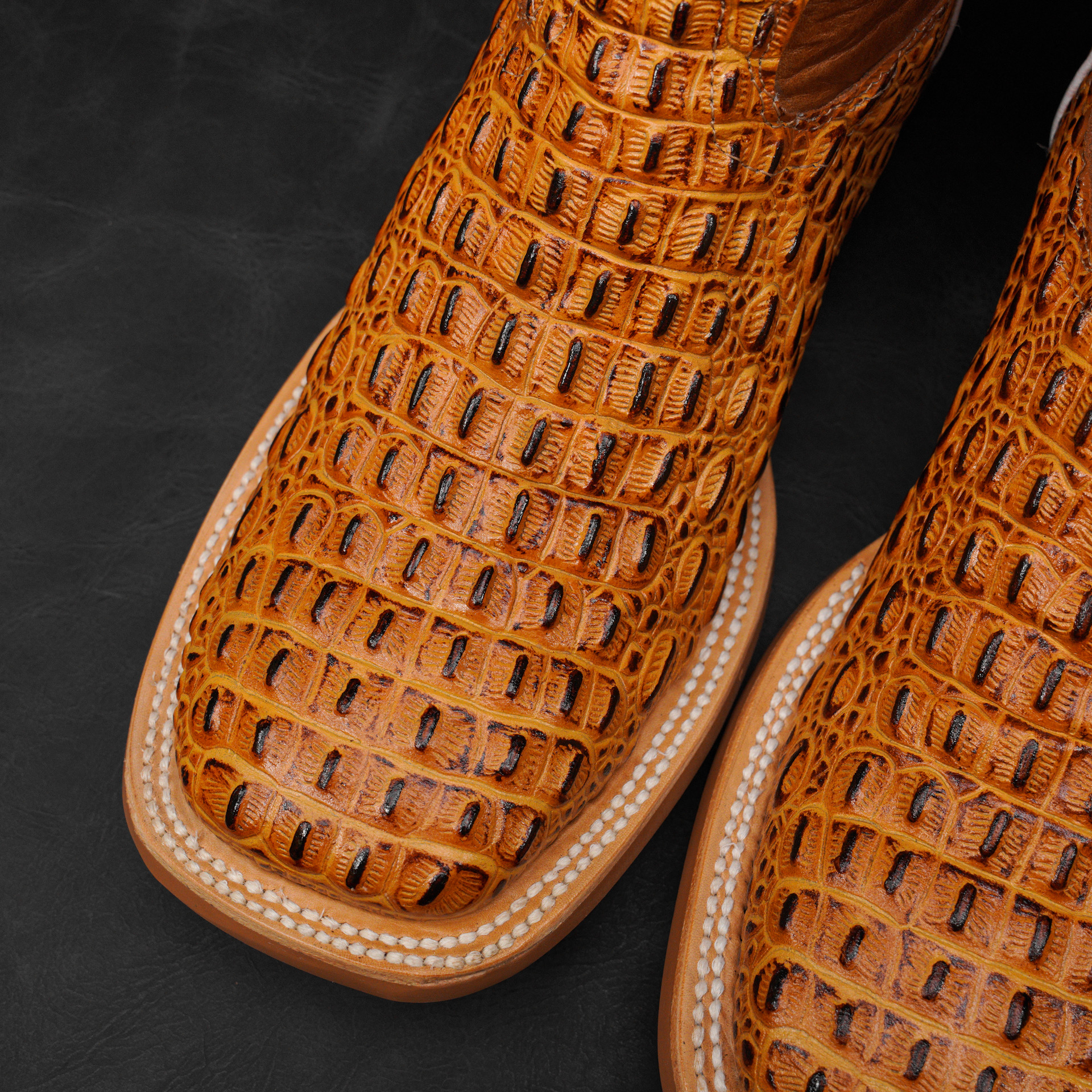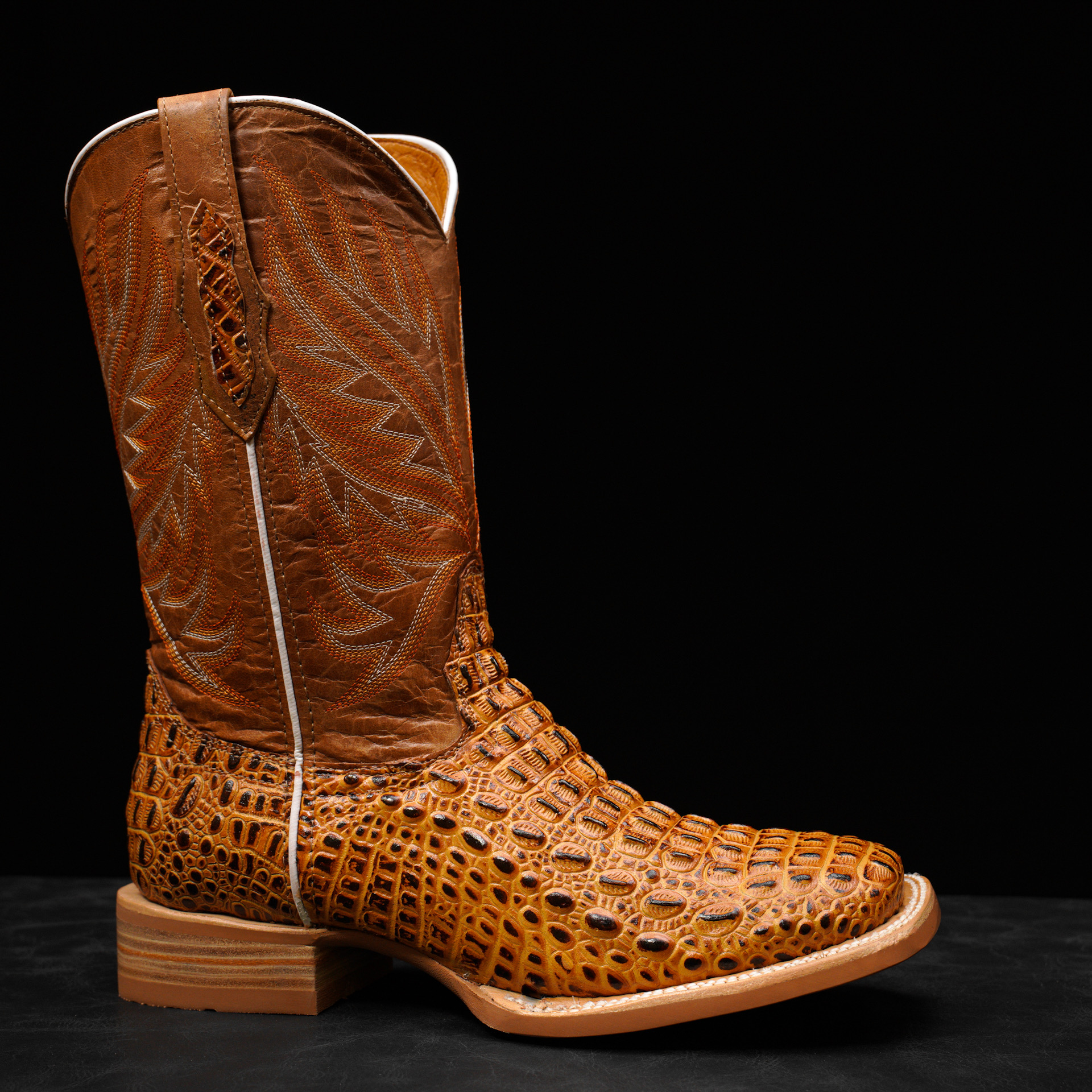 Honey Caiman Horn Back – Square Toe