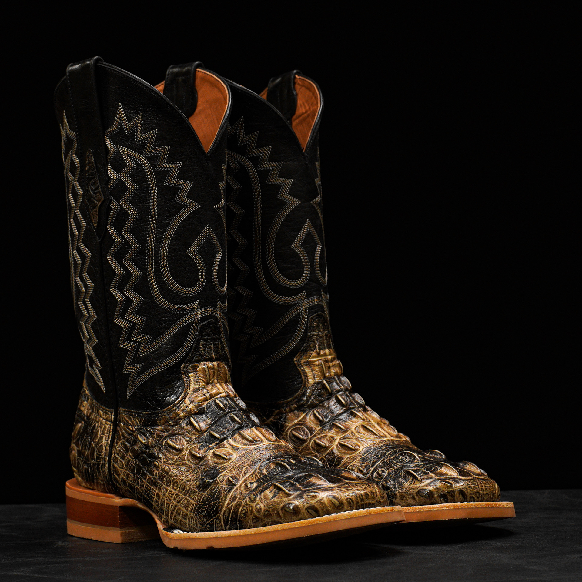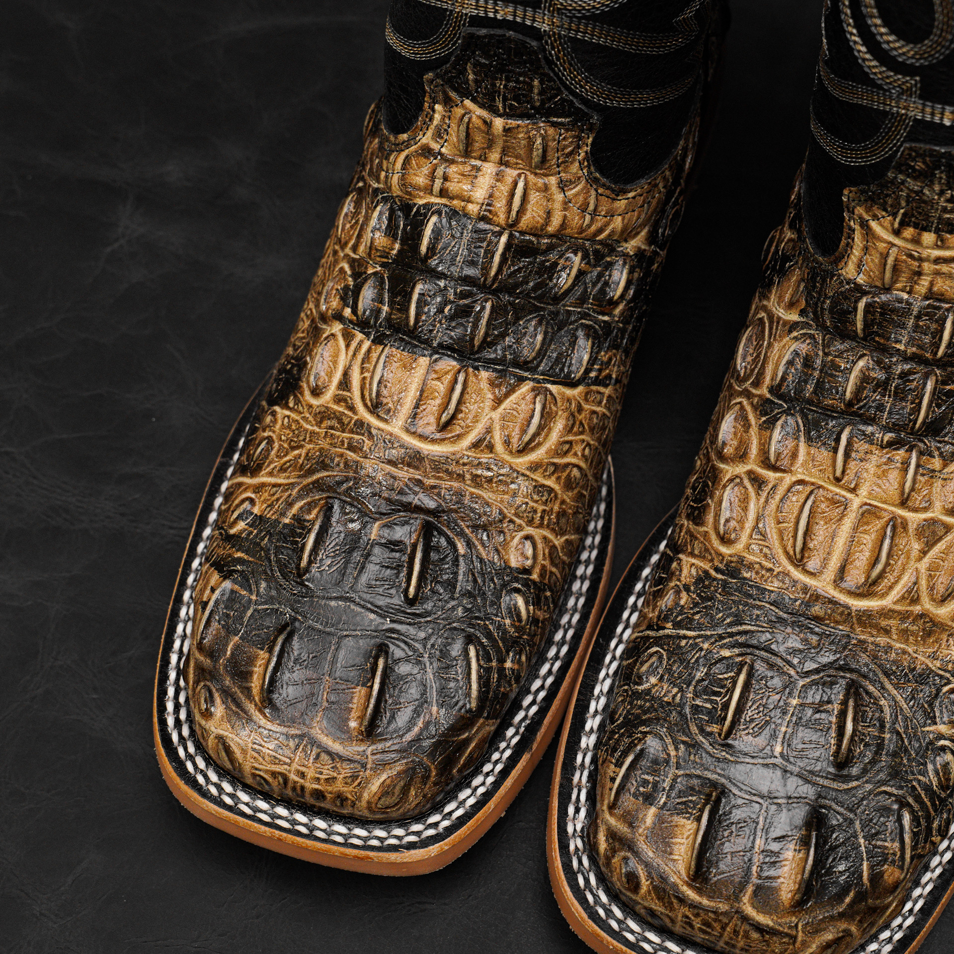 Rustic Bone Caiman Neck – Square Toe