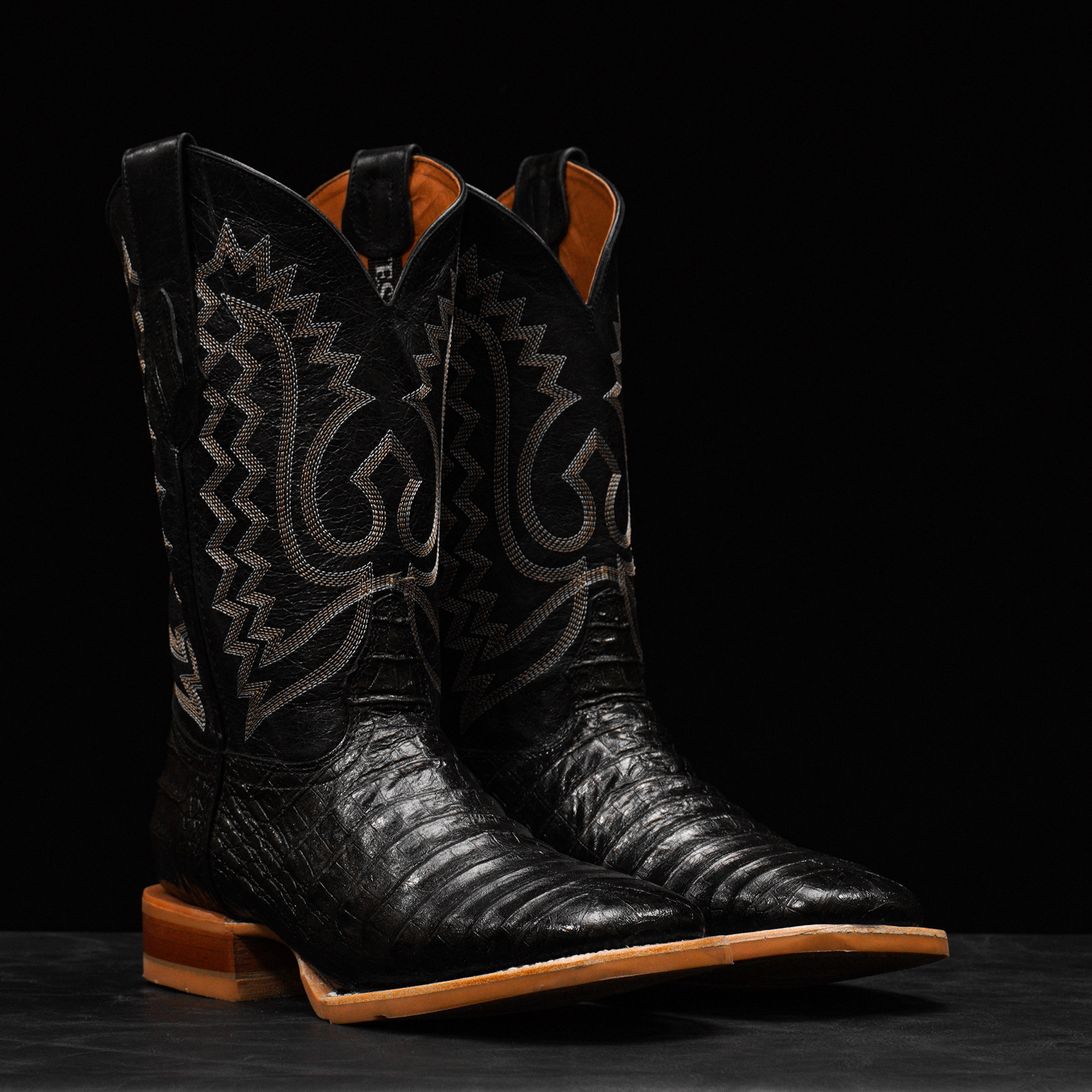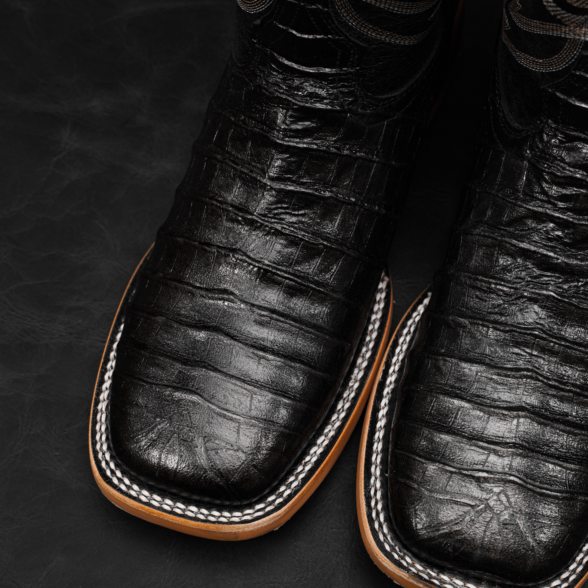 Black Caiman Belly – Square Toe