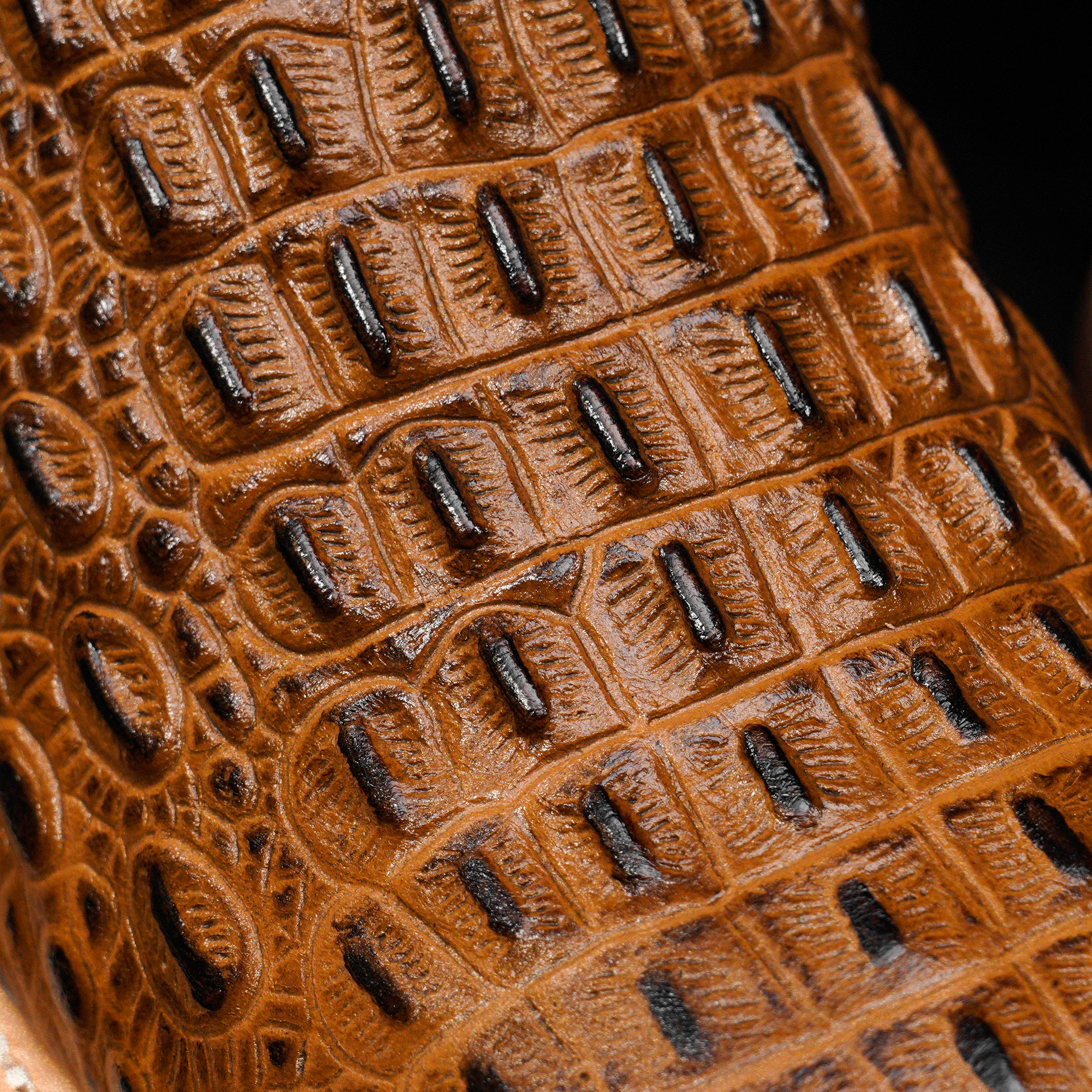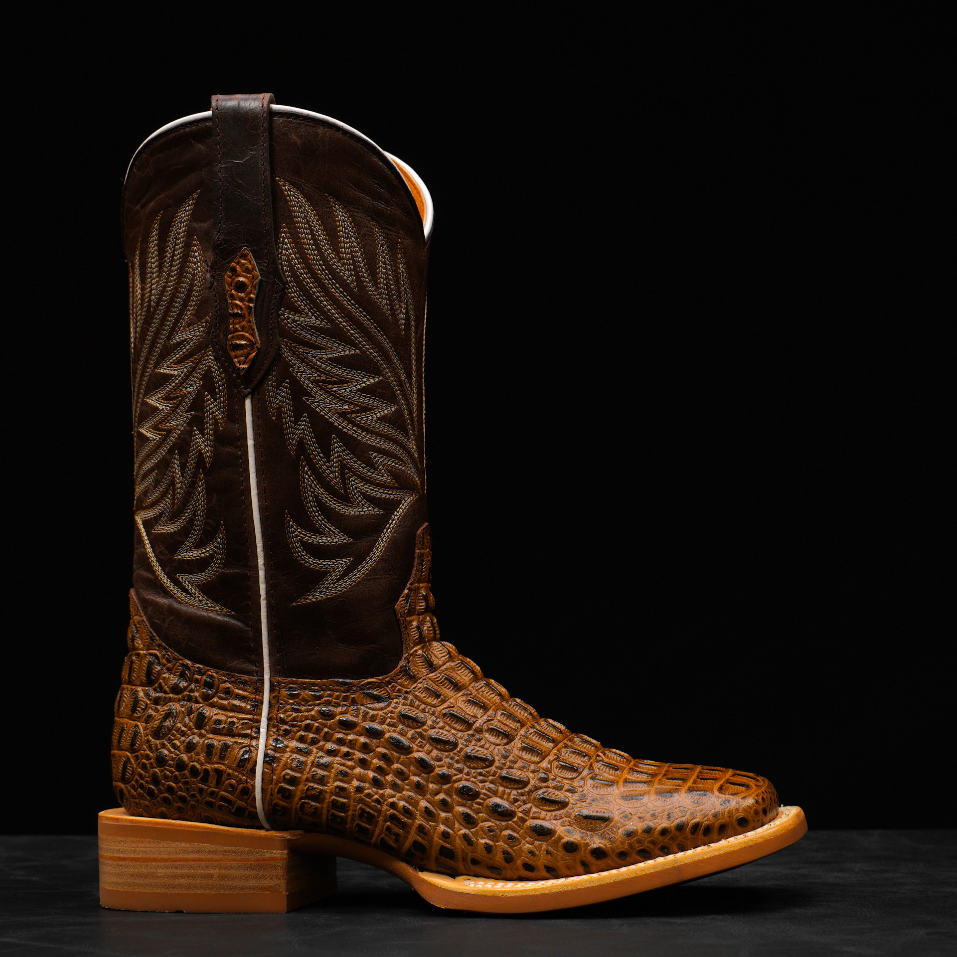 Honey Caiman Horn Back – Square Toe