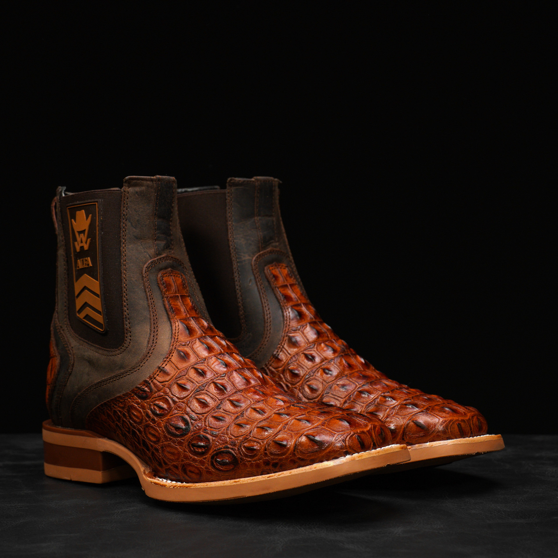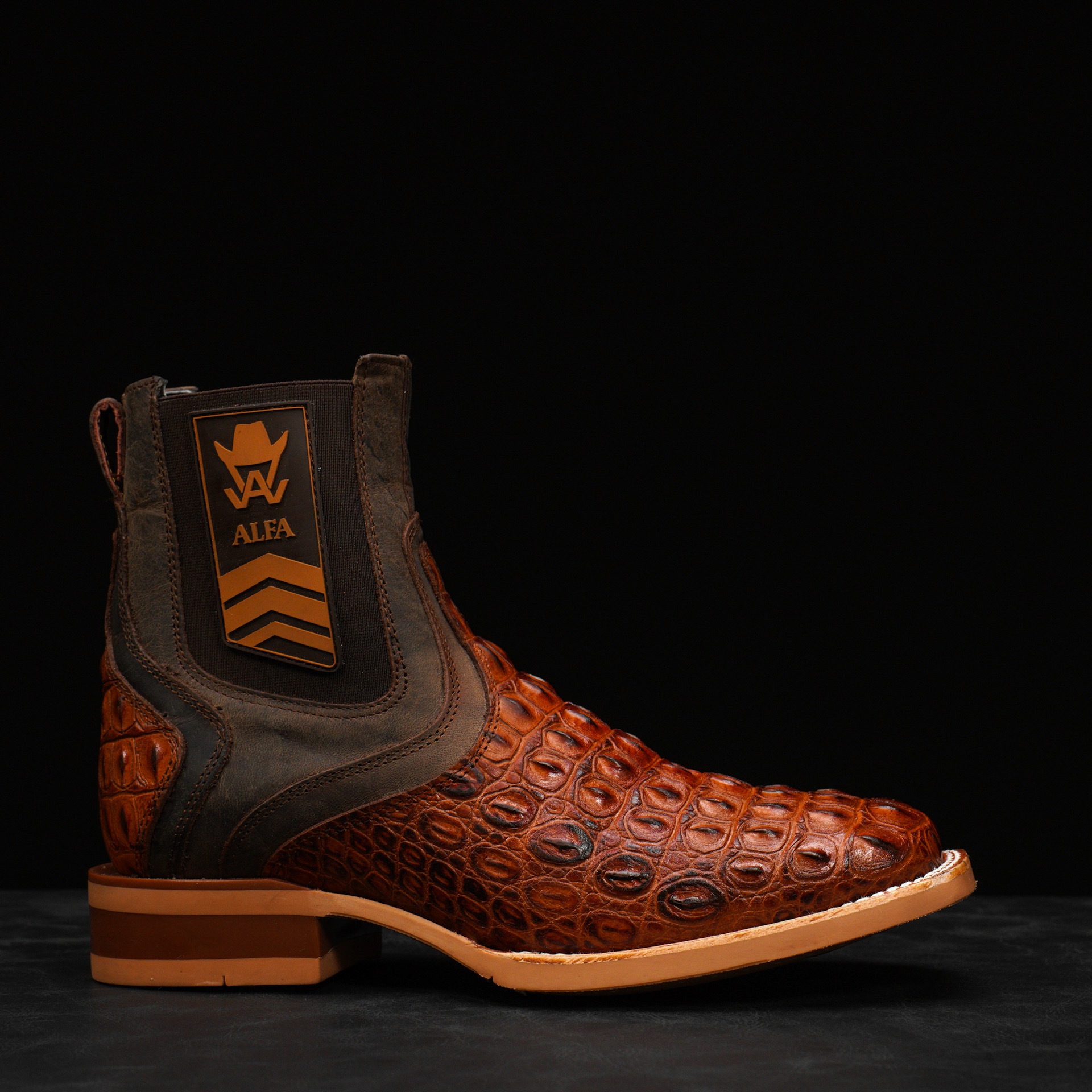 Cognac Caiman Horn Back Chelsea Boot – Square Toe
