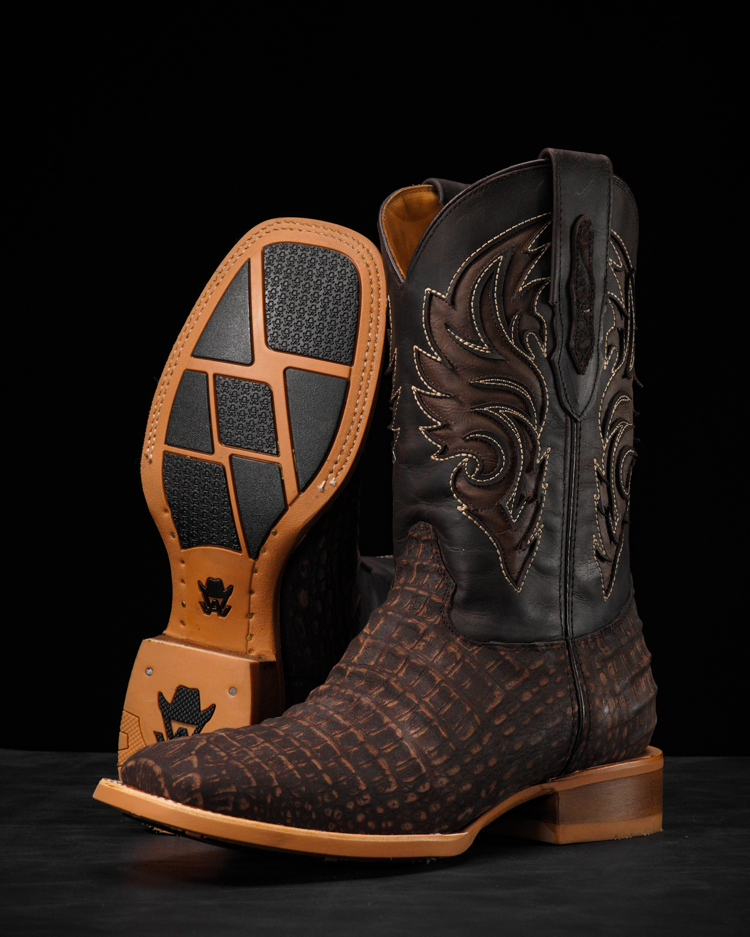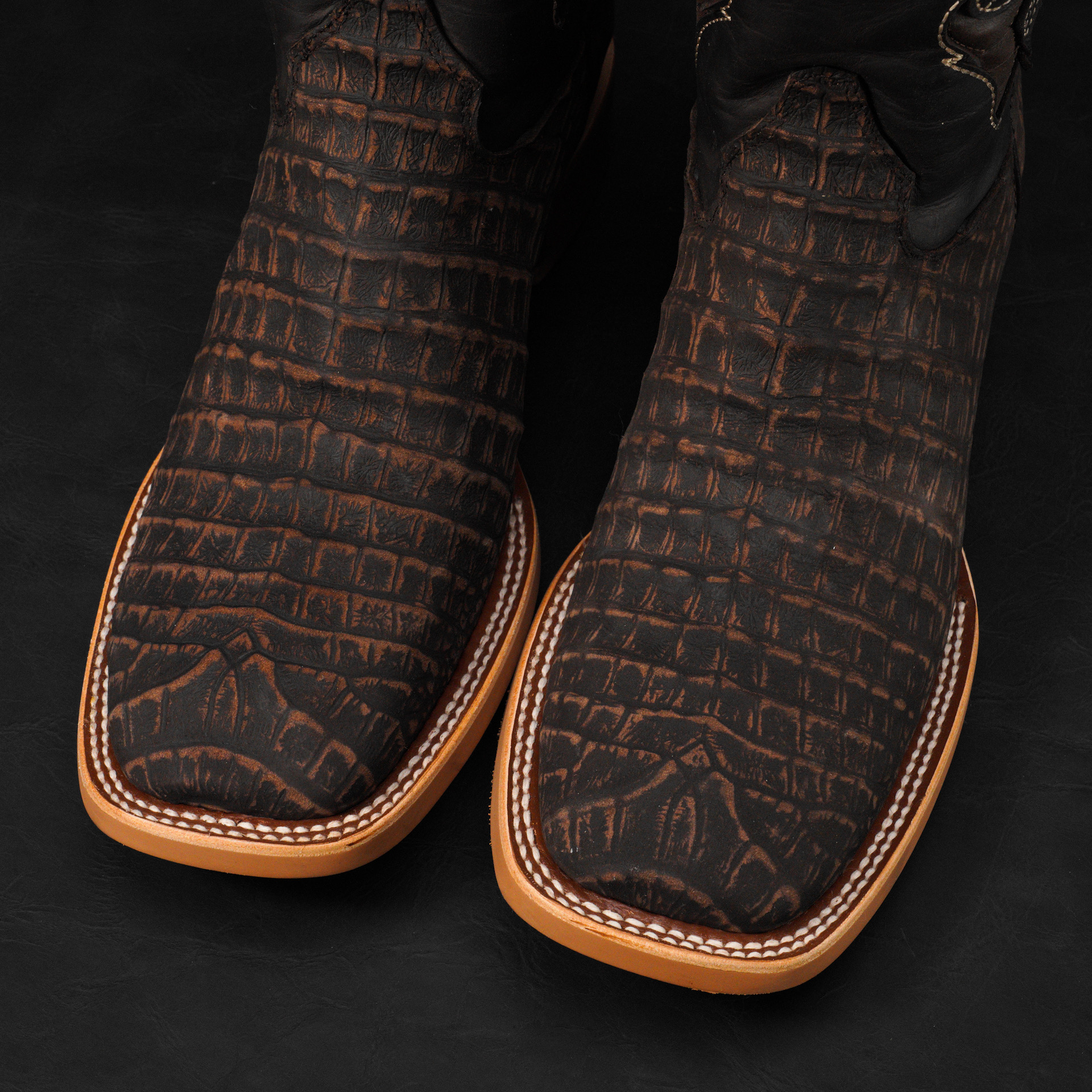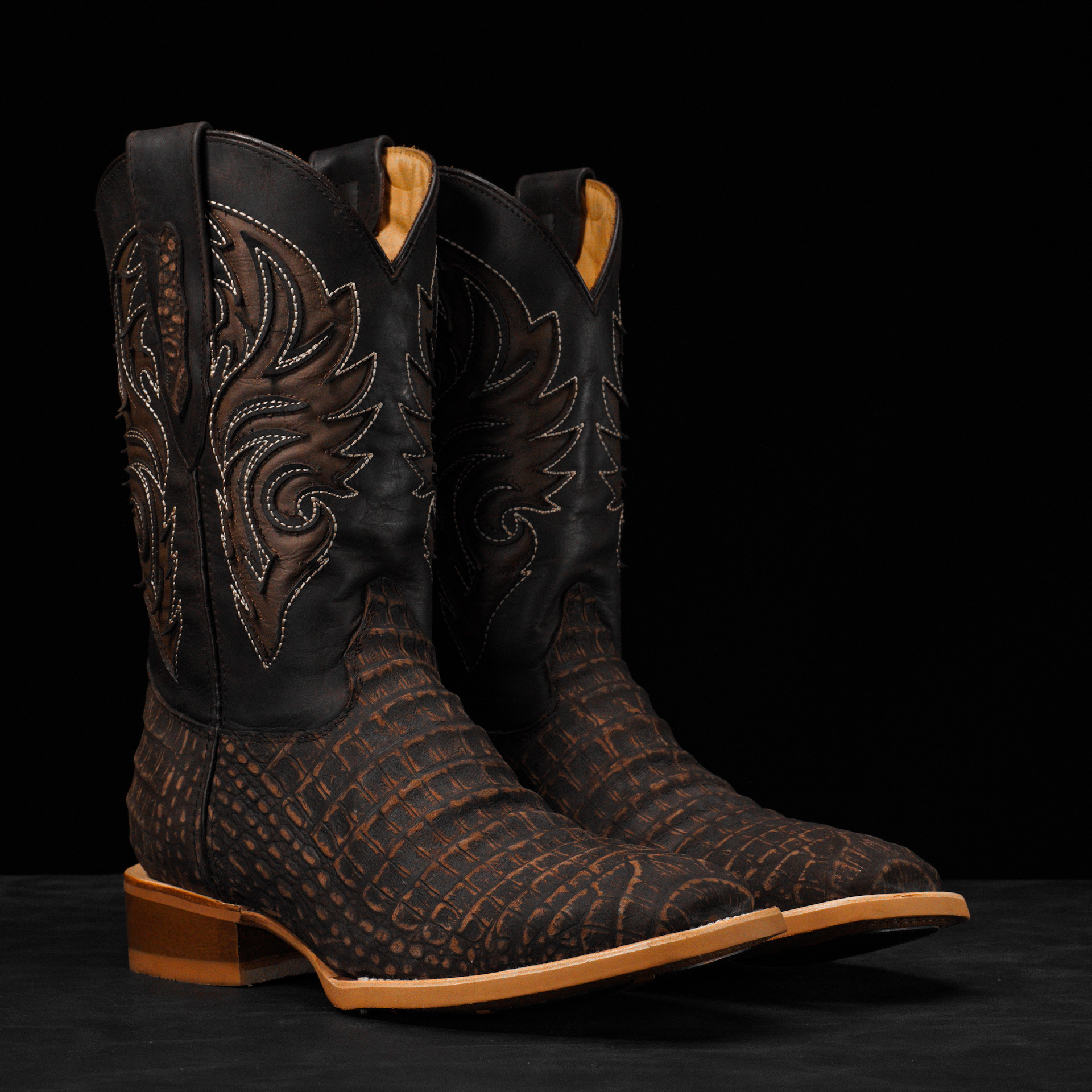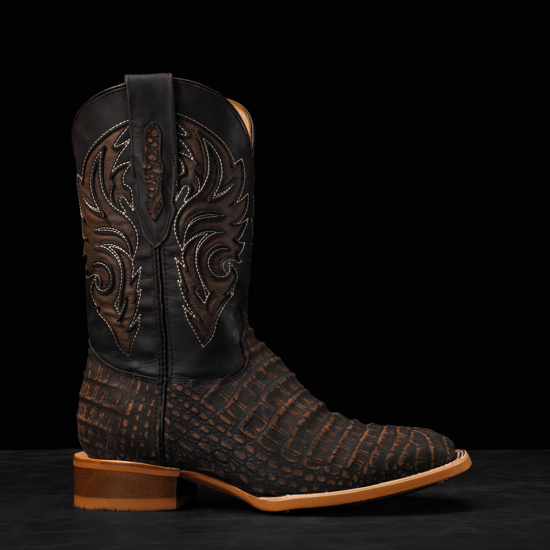 Matte Brown Caiman Belly – Square Toe