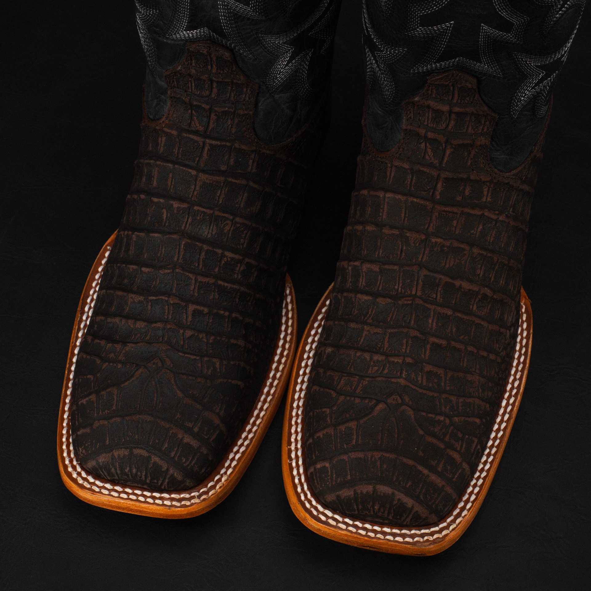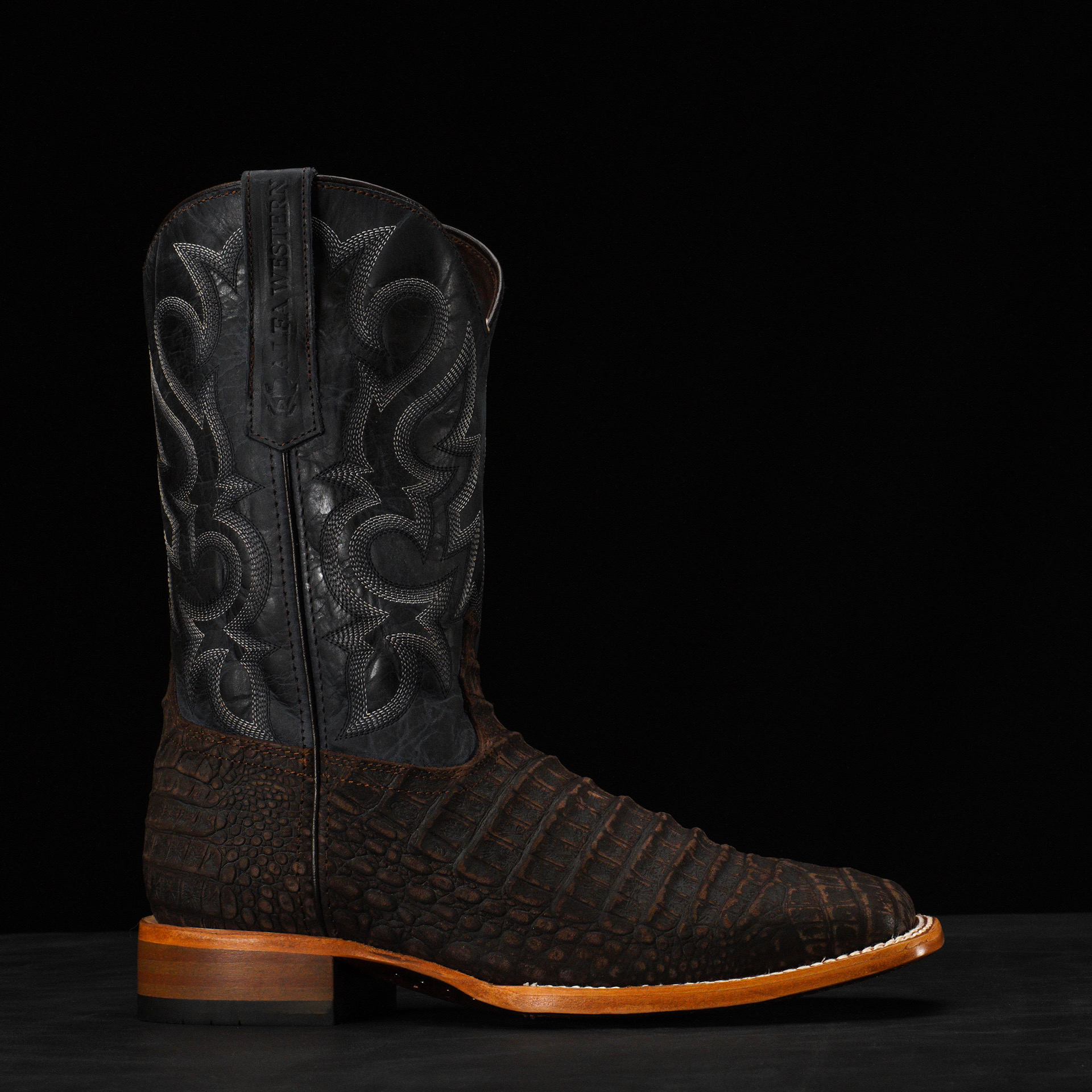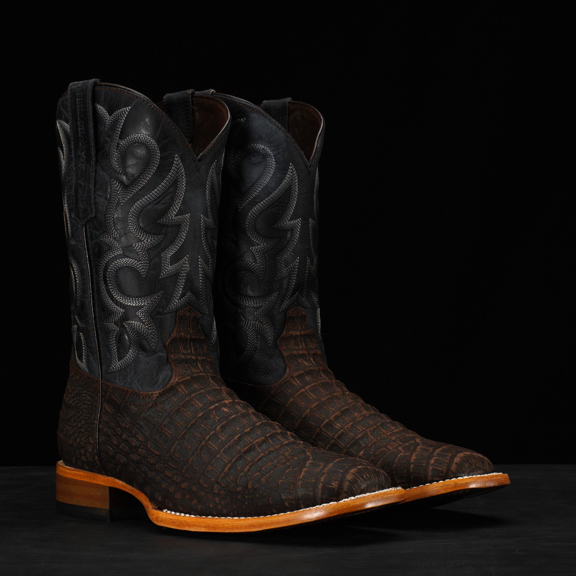 Matte Brown Nubuck Caiman Belly – Heritage Square Toe