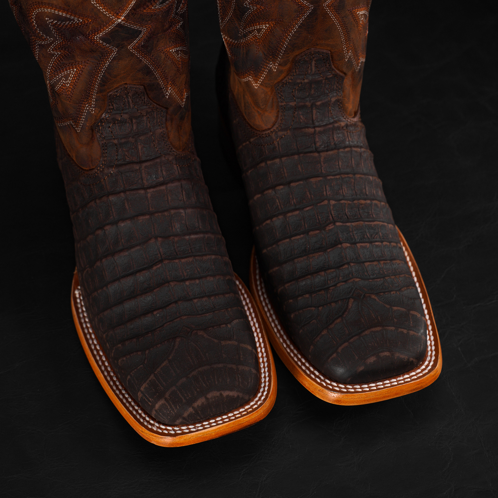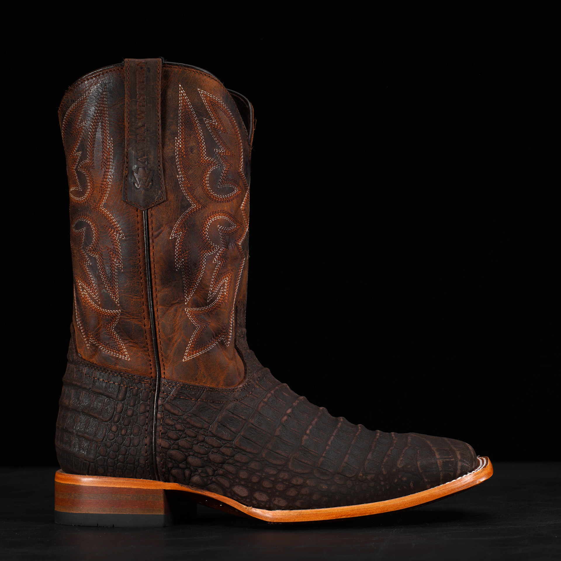 Matte Brown Nubuck Caiman Belly – Heritage Square Toe