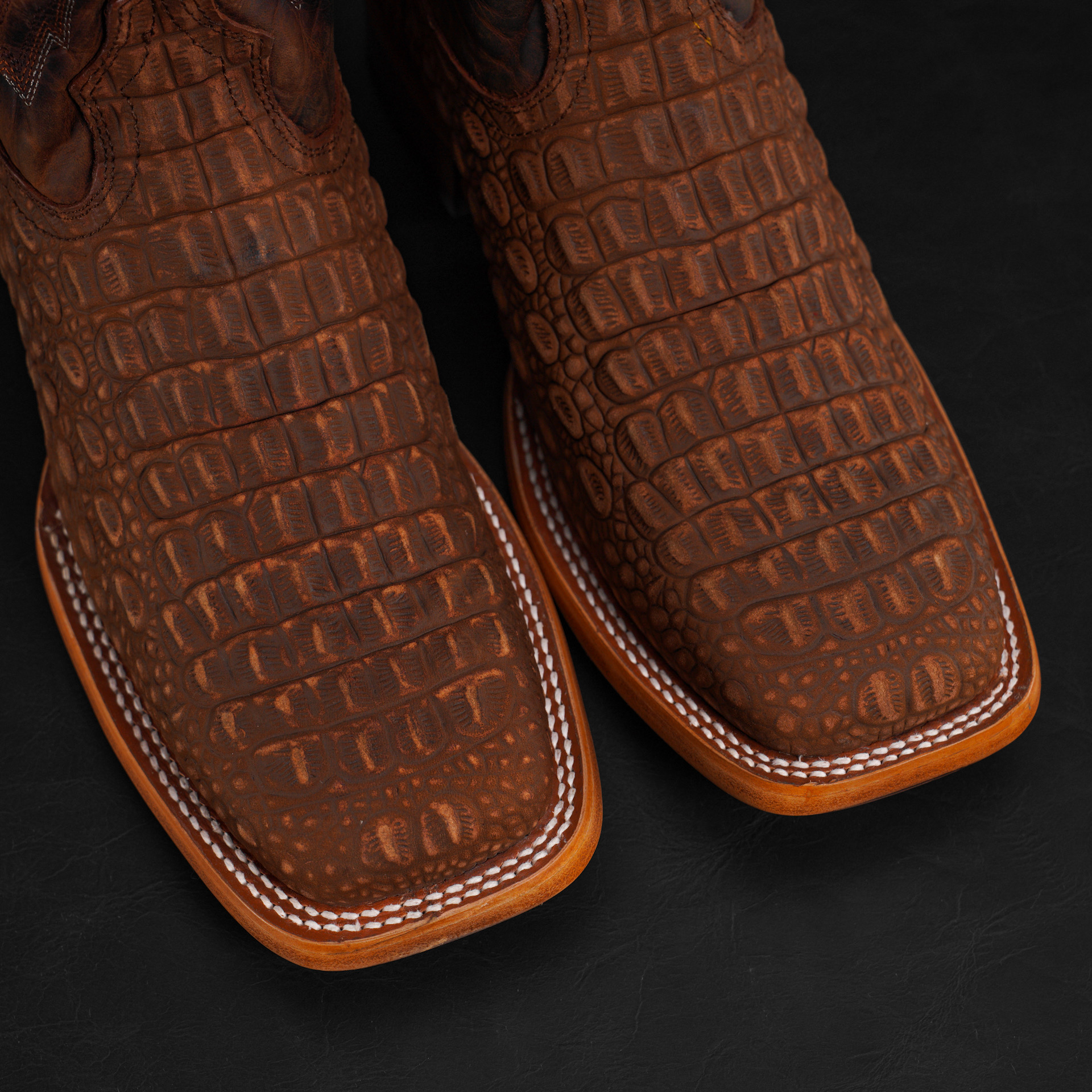 Matte Cognac Nubuck Caiman Hornback – Heritage Square Toe