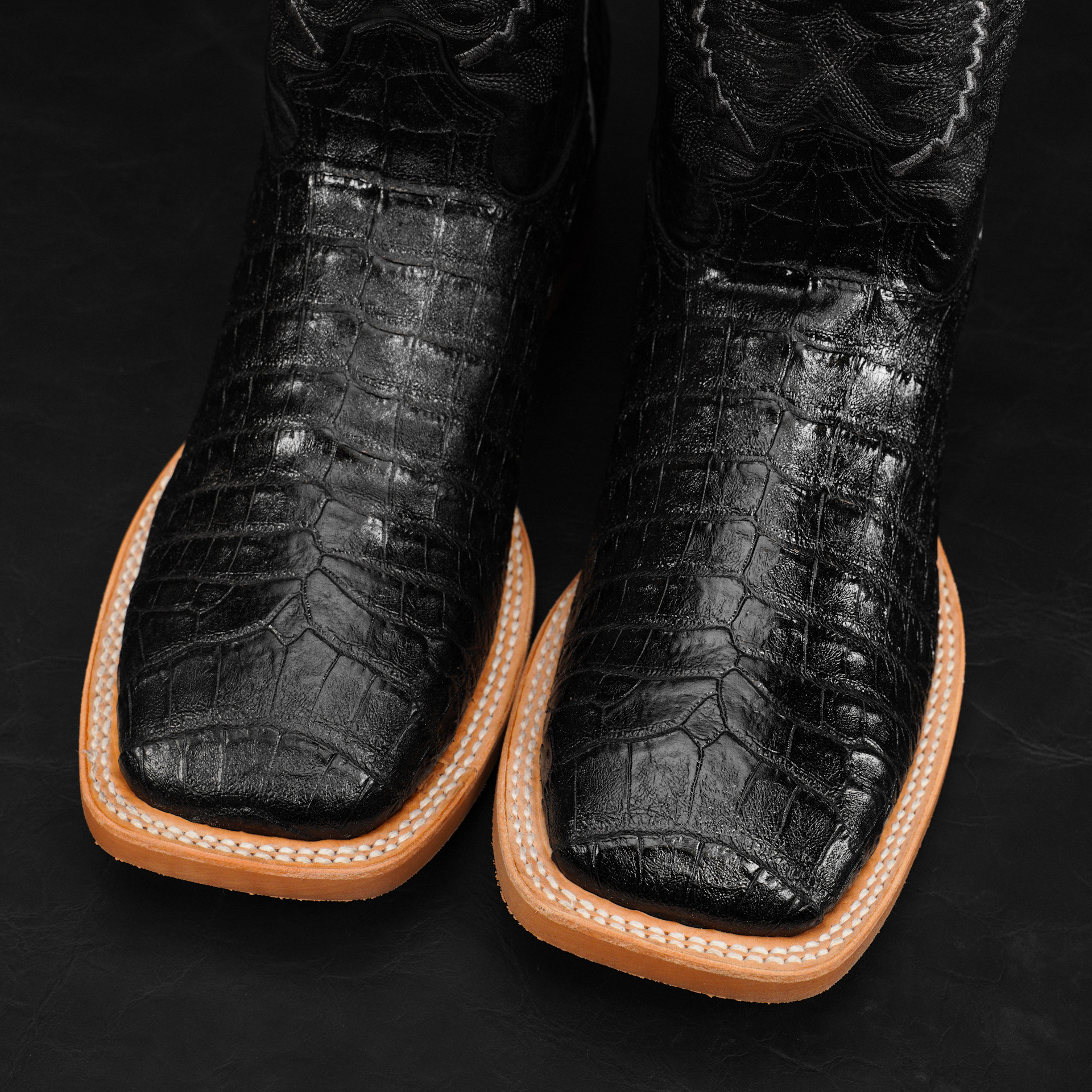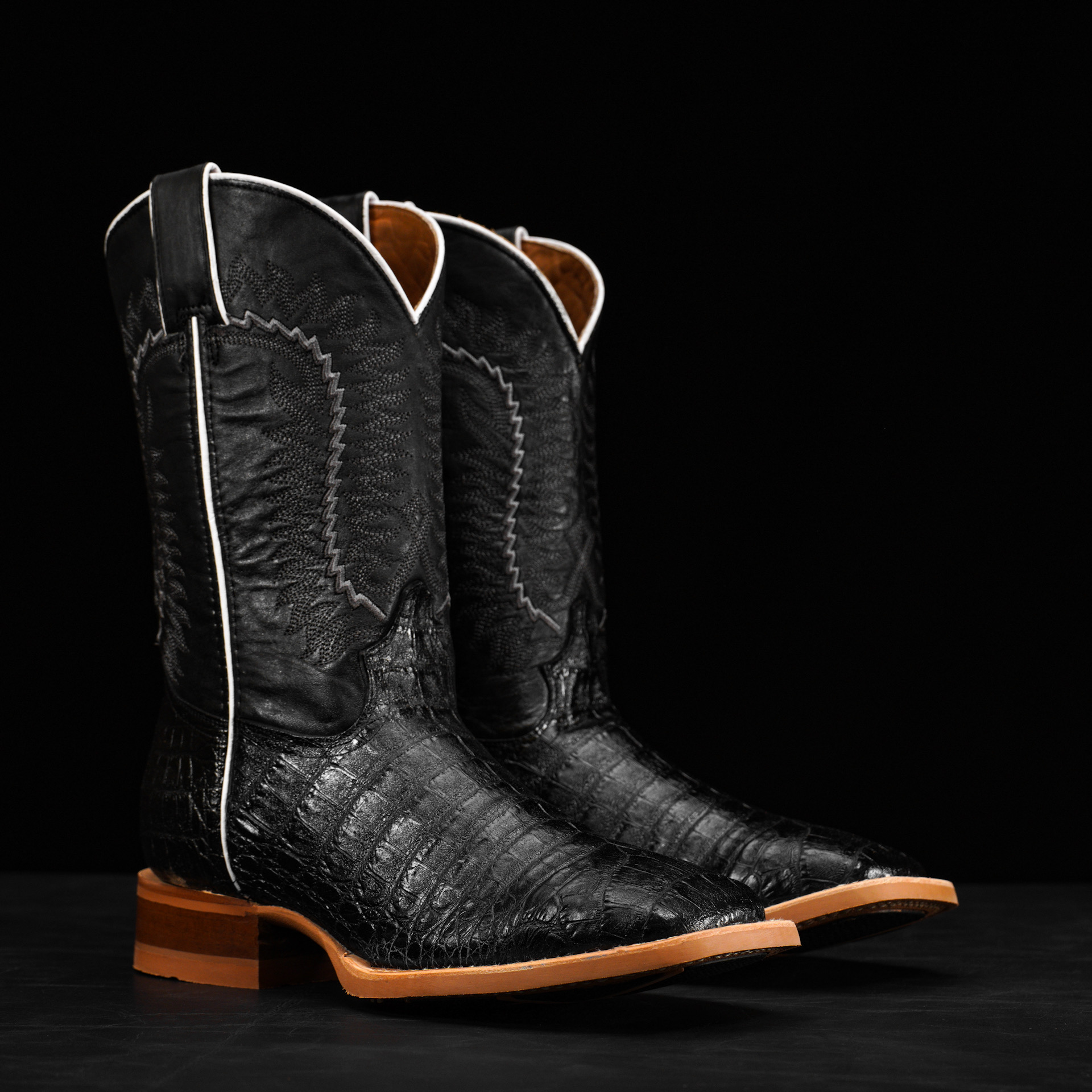 Black Caiman Belly – Square Toe