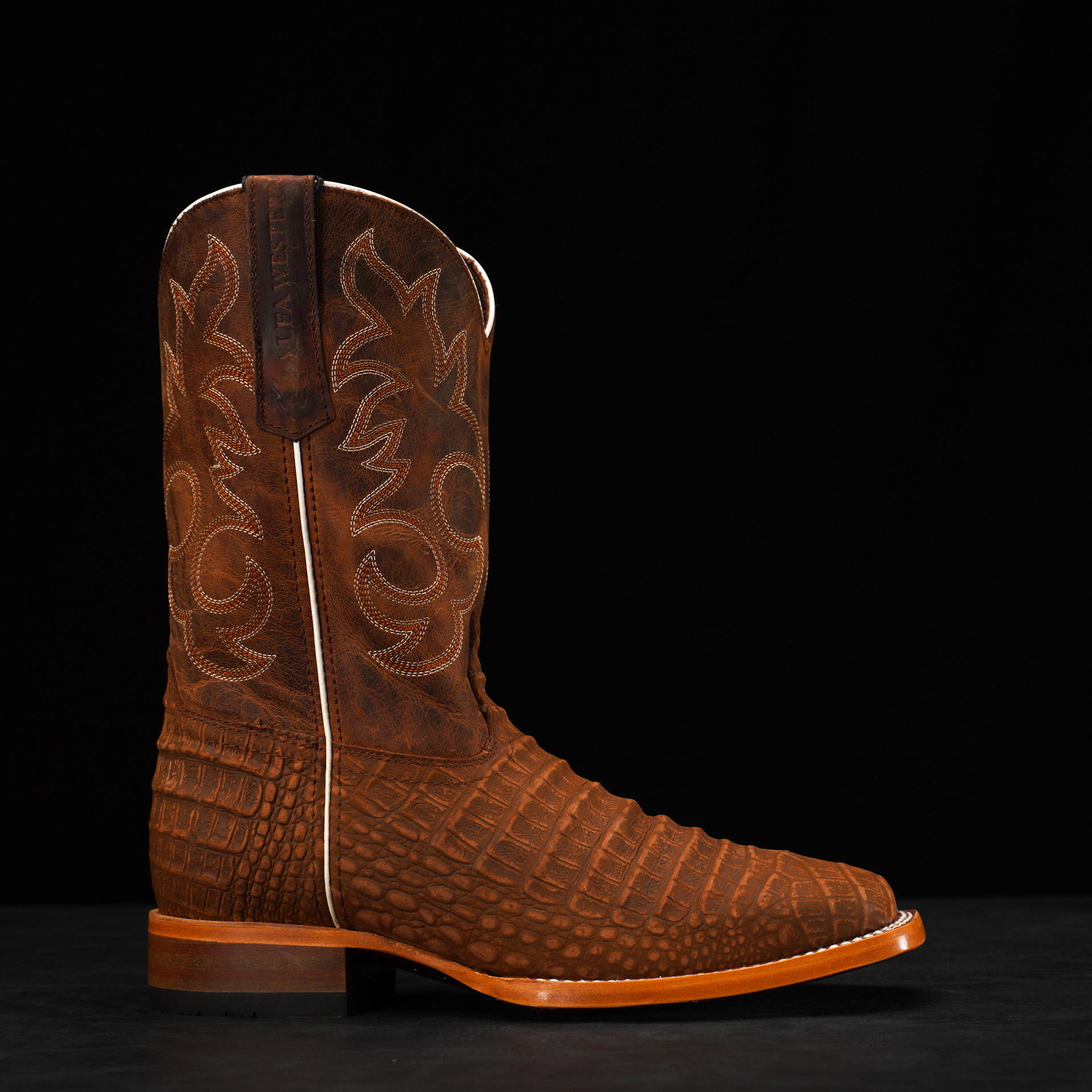 Matte Cognac Nubuck Caiman Belly – Heritage Square Toe