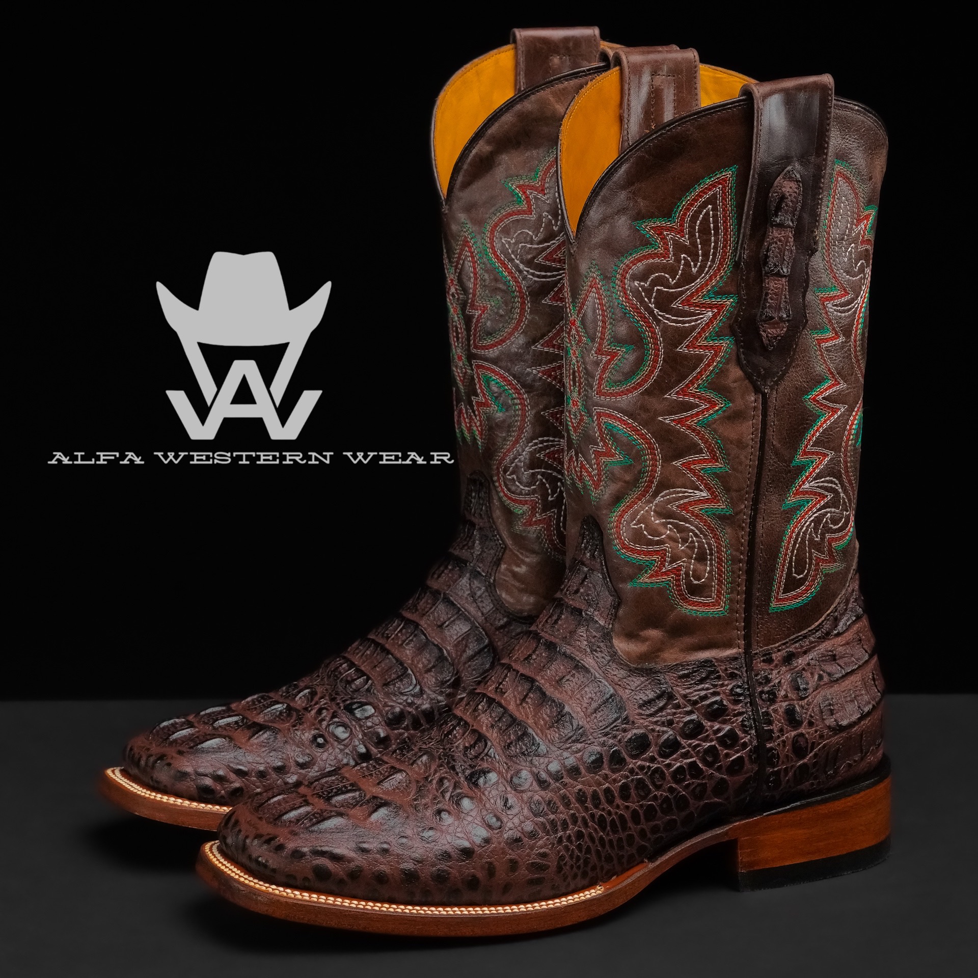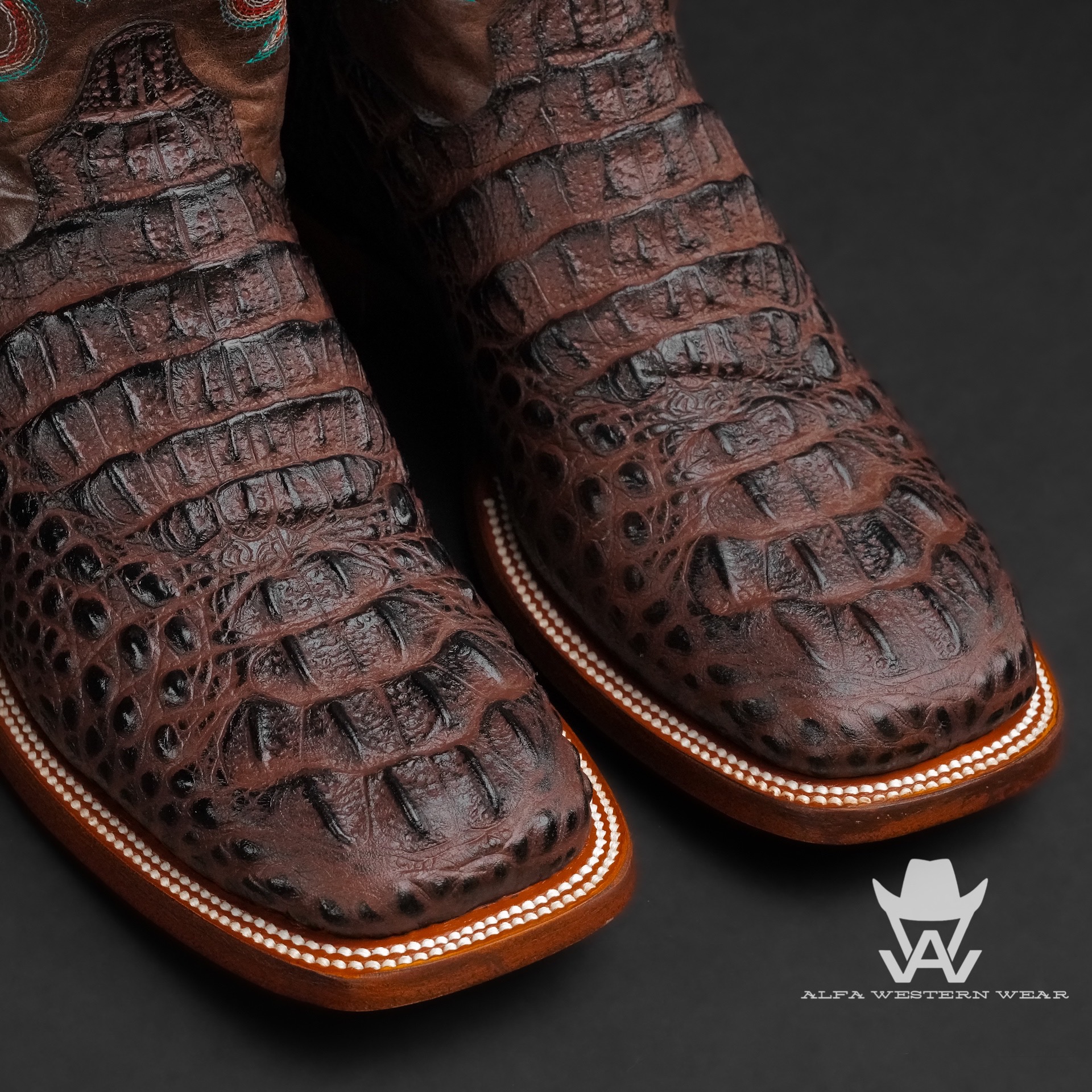Men’s Handmade Brown Caiman Neck – Square Toe