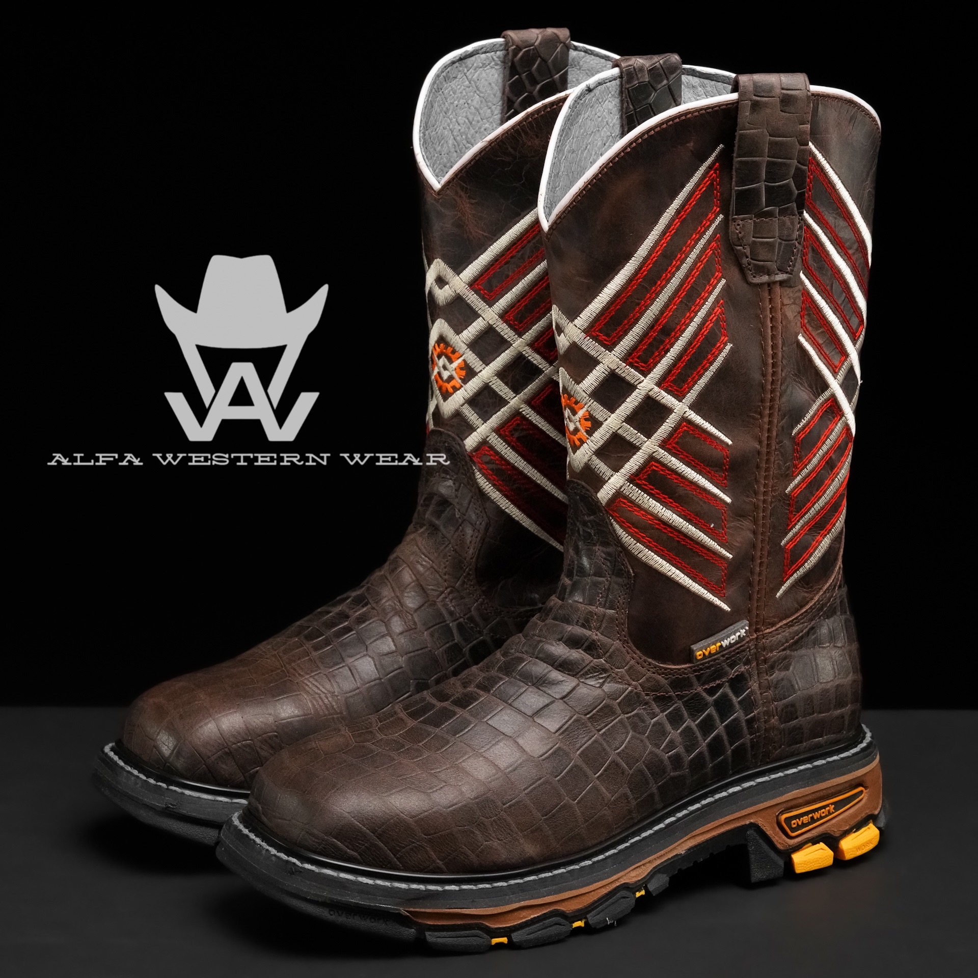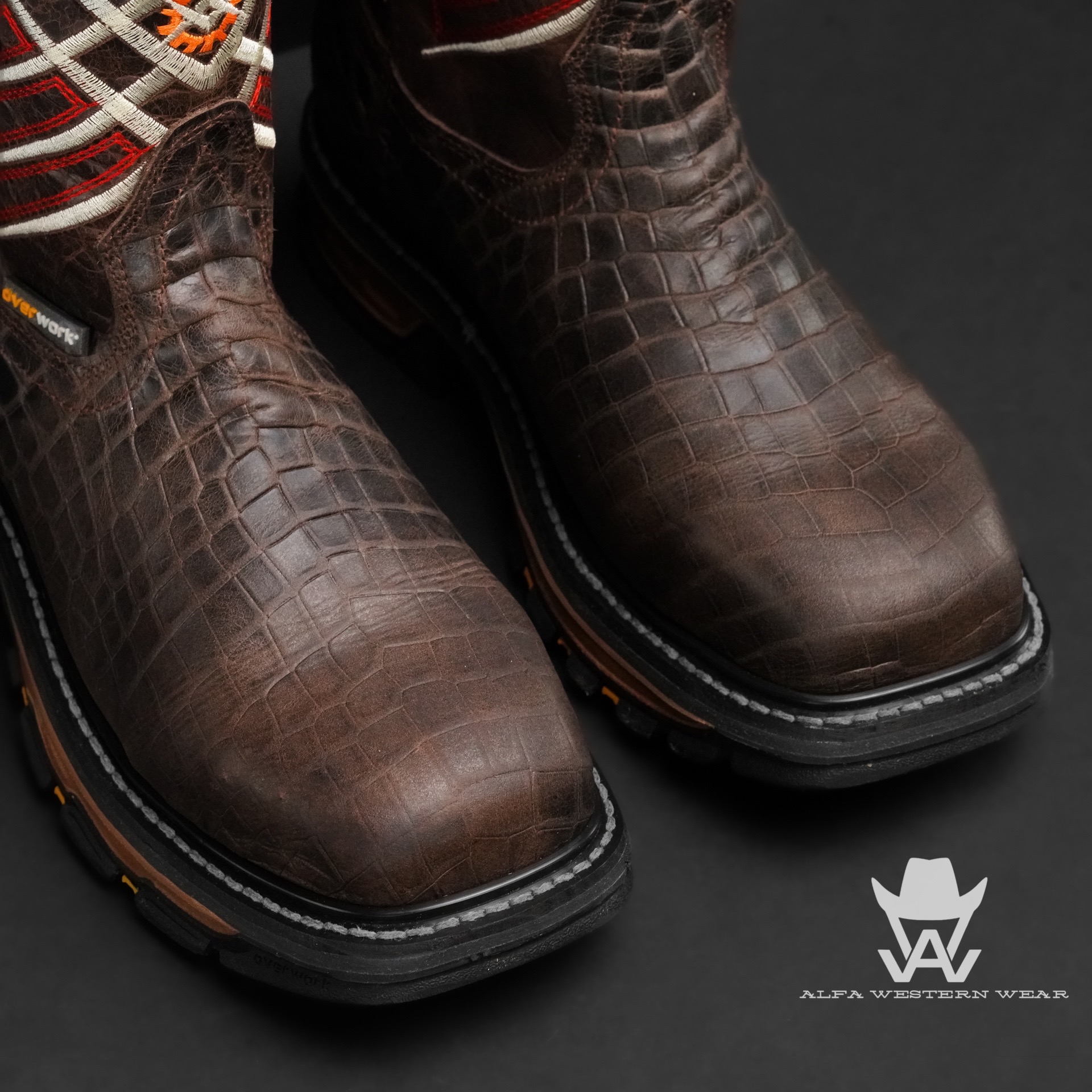 Men’s Handmade Brown Caiman Belly Steel Toe – Square Toe