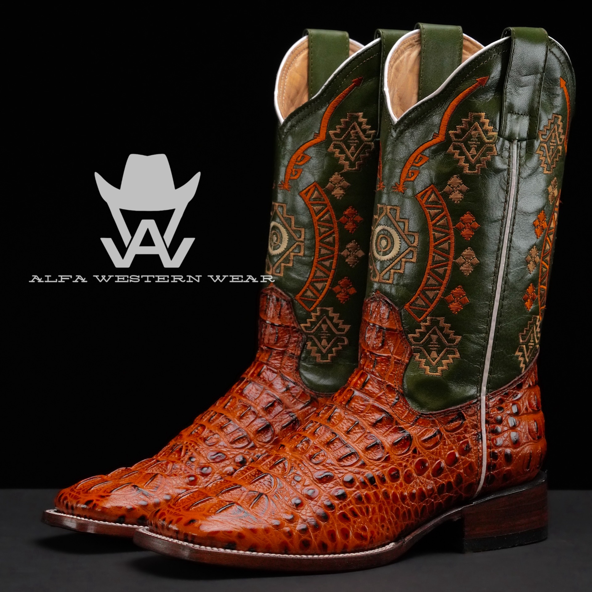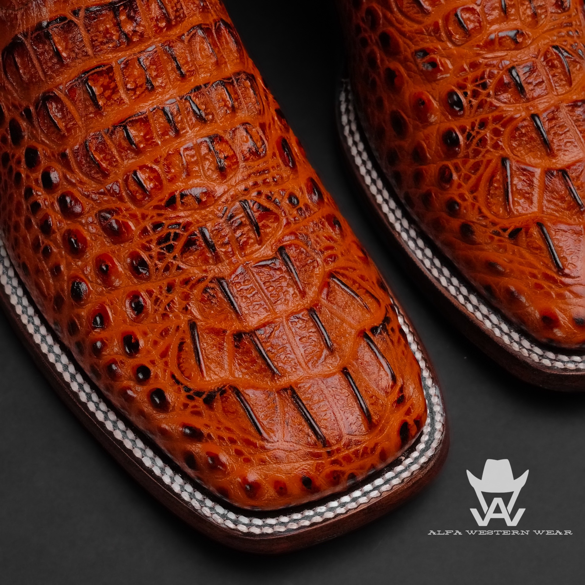 Men’s Handmade Cognac Caiman Neck – Square Toe