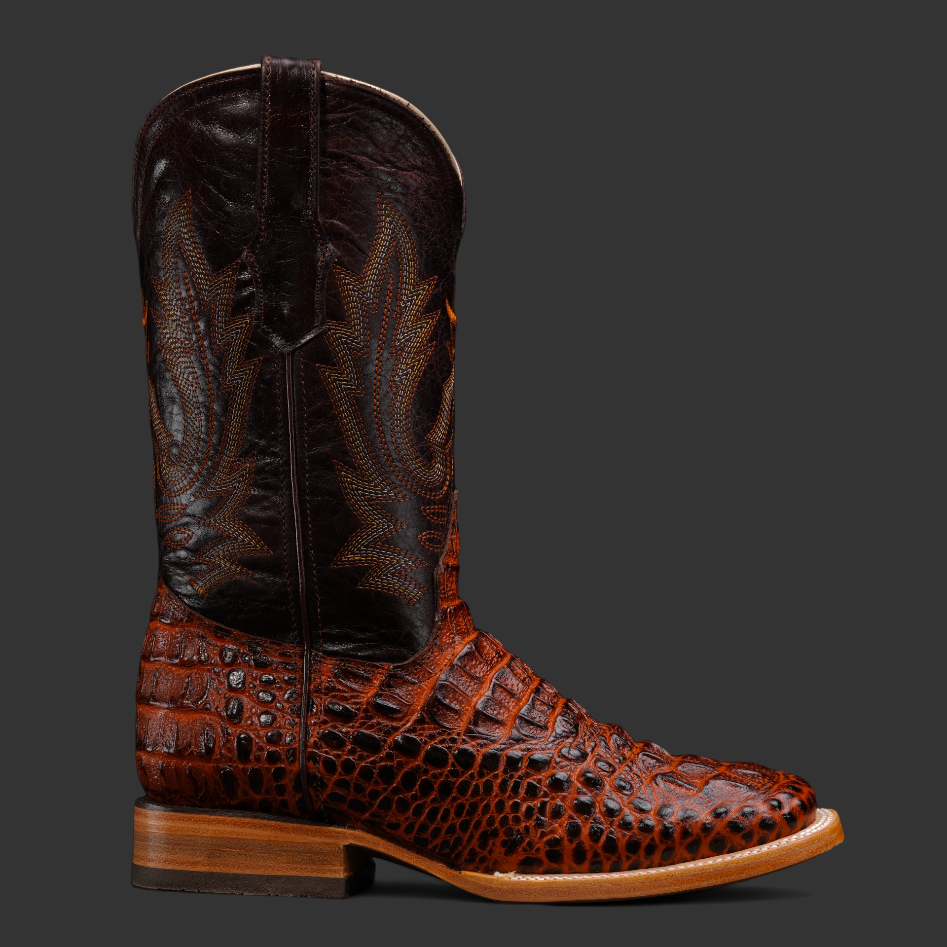 Cognac Caiman Neck – Square Toe
