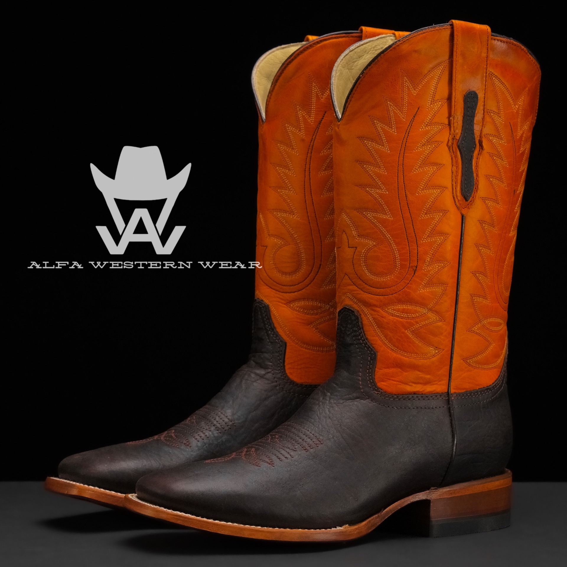 Men’s Handmade ALFA Chocolate Brown Elephant – Square Toe