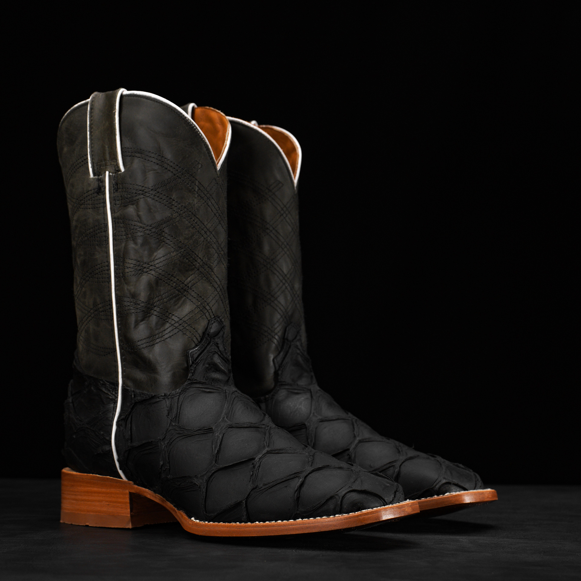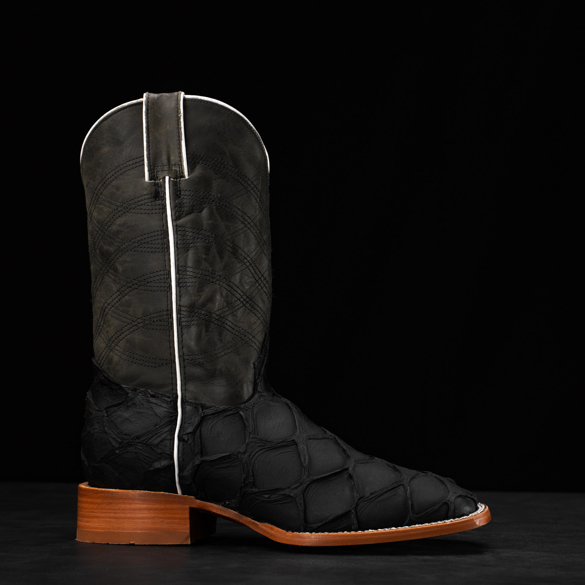 Matte Black Pirarucu – Square Toe