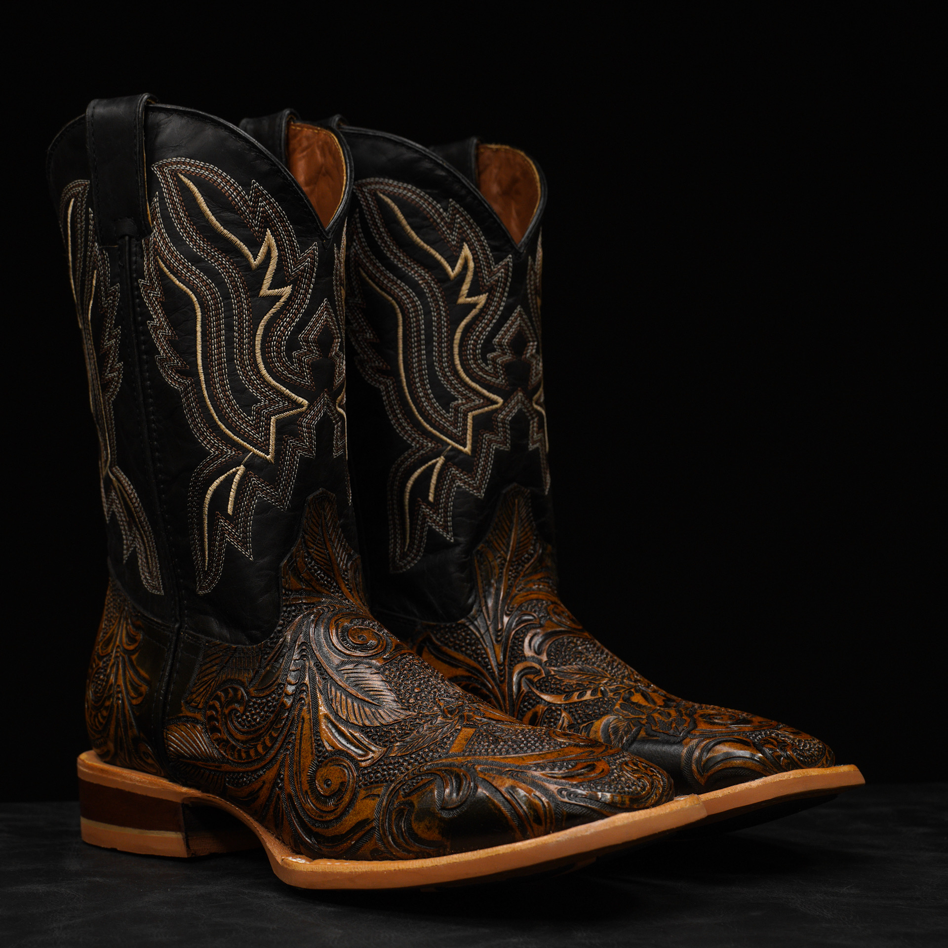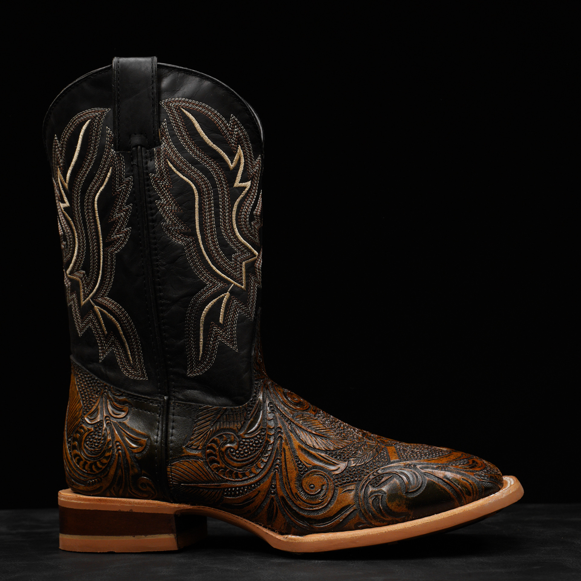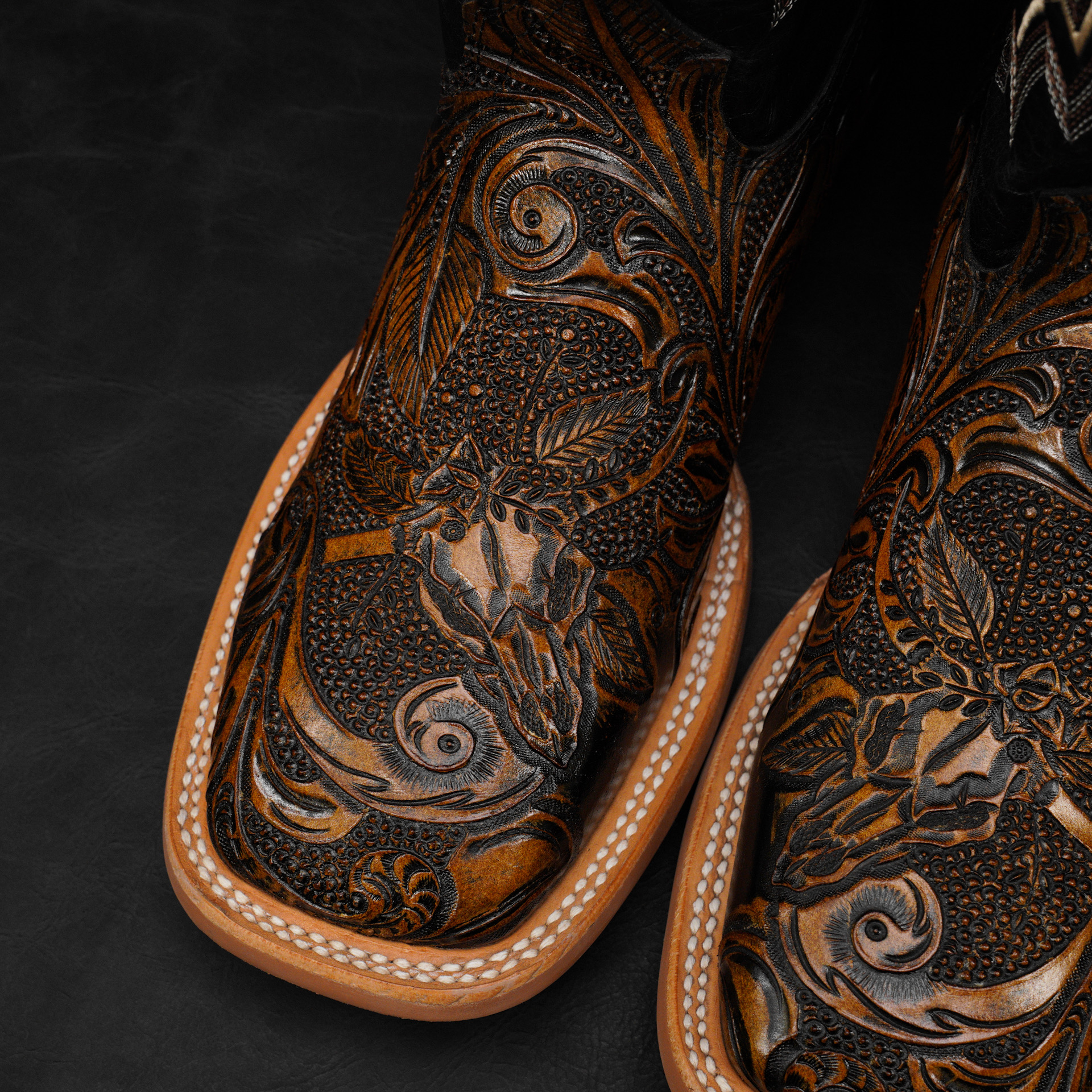 Tan Safari Hand Tooled Longhorn Skull – Square Toe