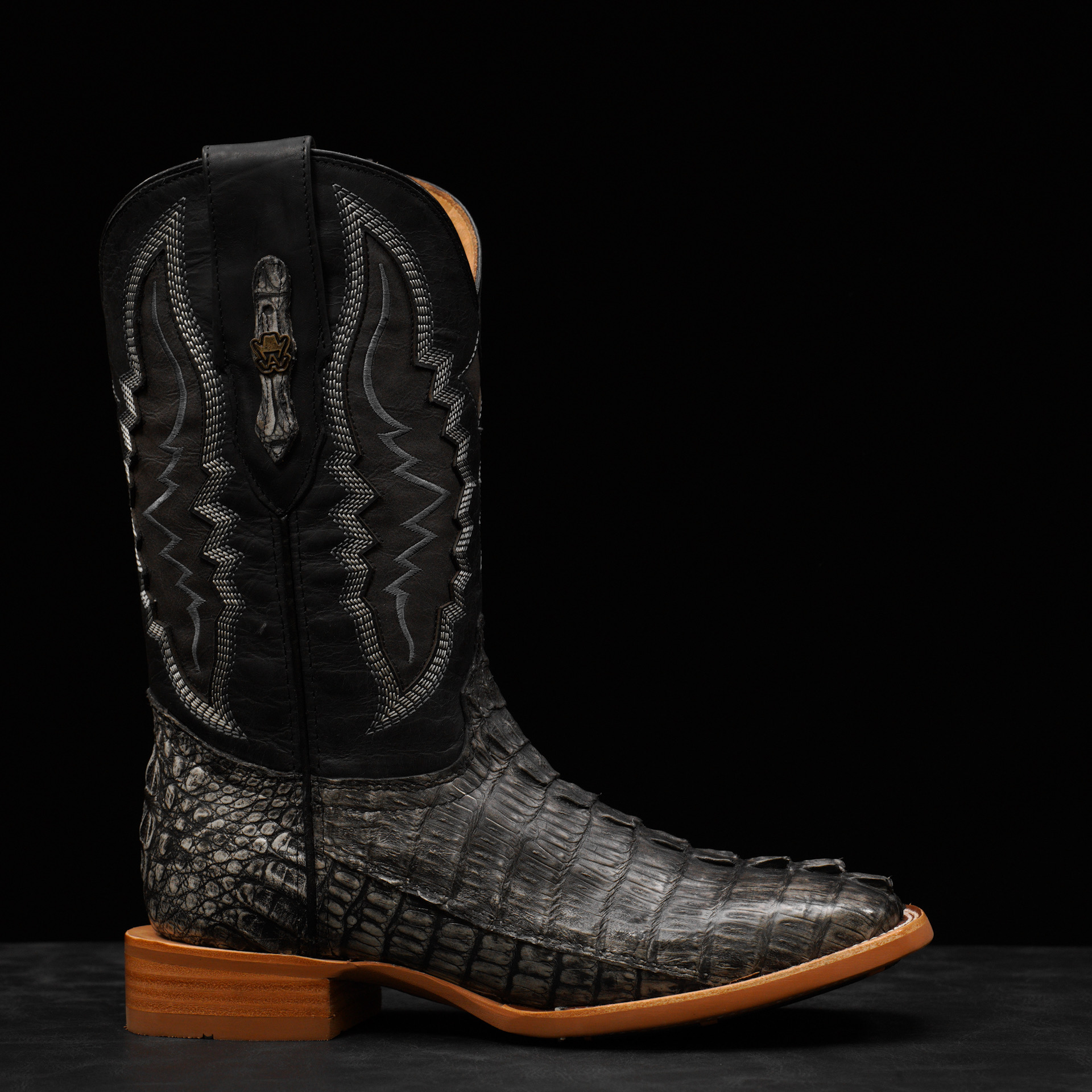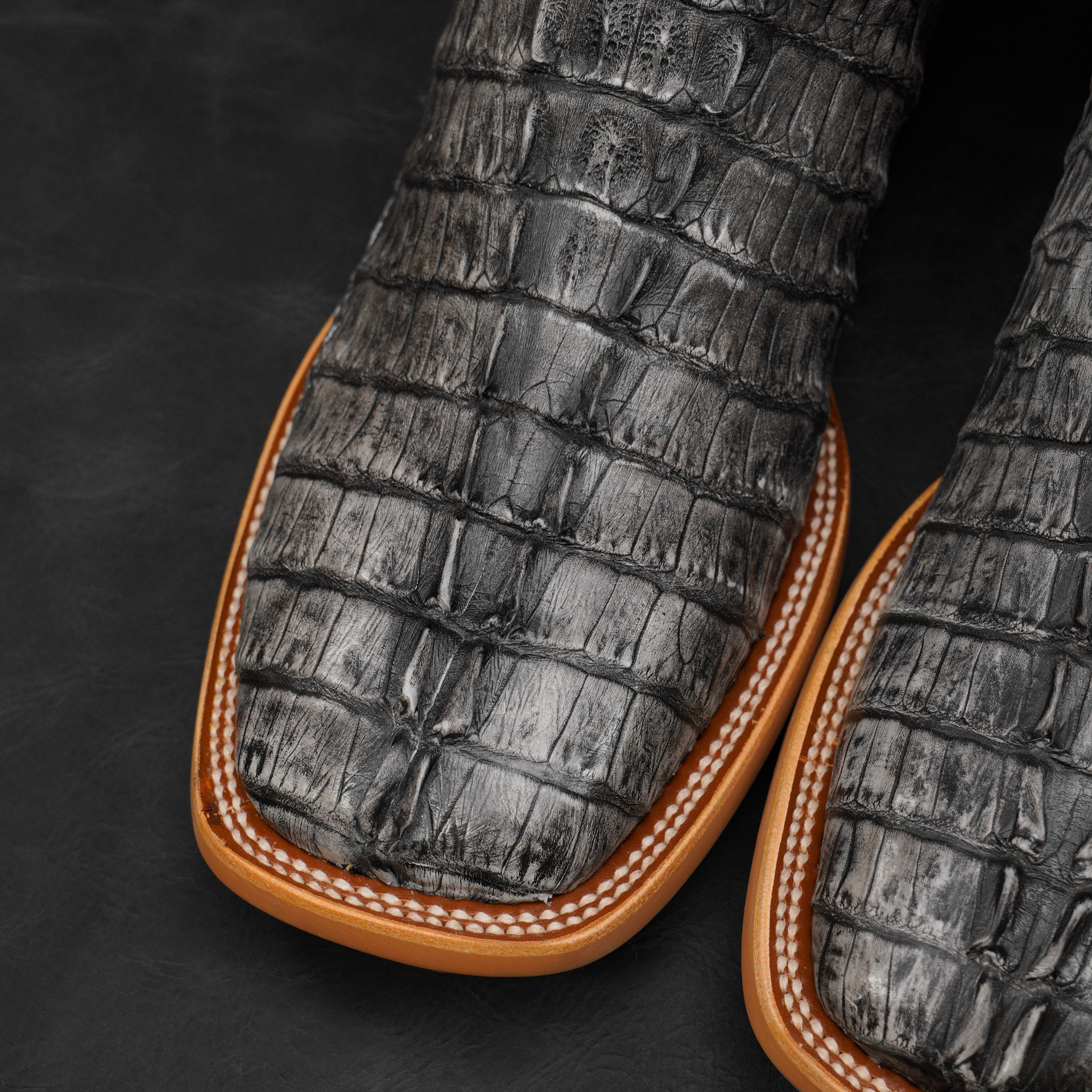 AUTHENTIC Gray Caiman Tail – Square Toe