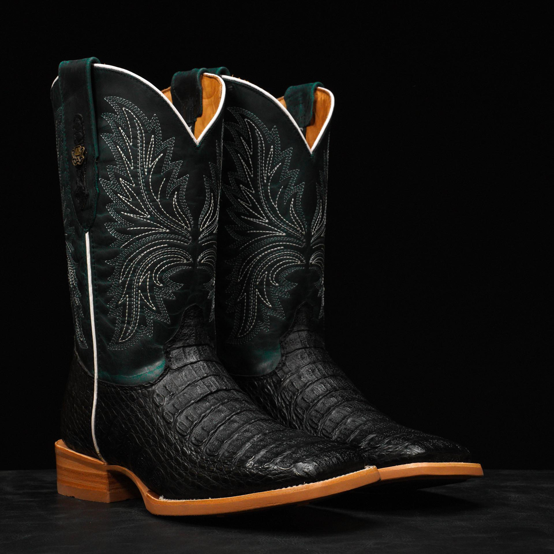AUTHENTIC Black Caiman Horn Back – Square Toe