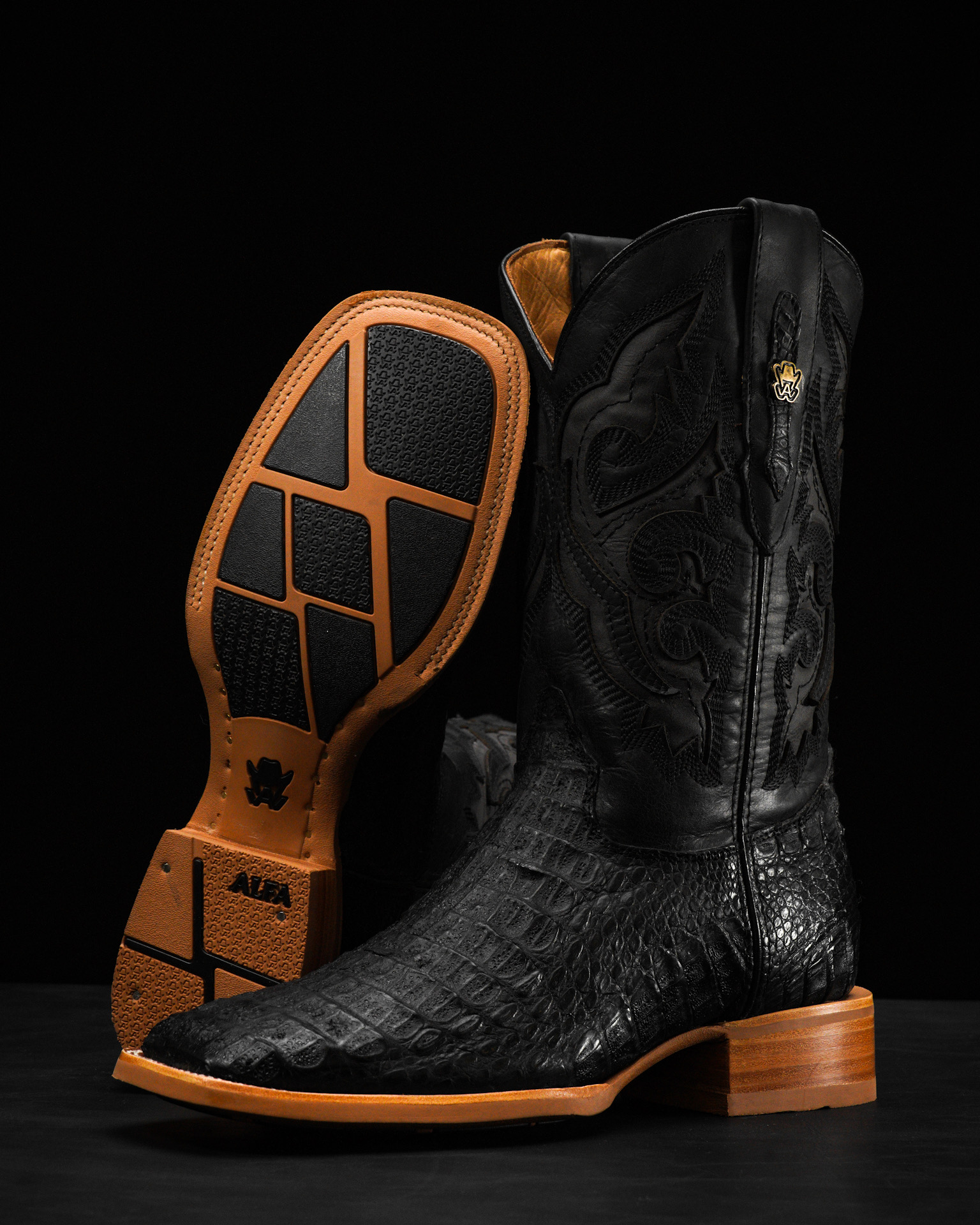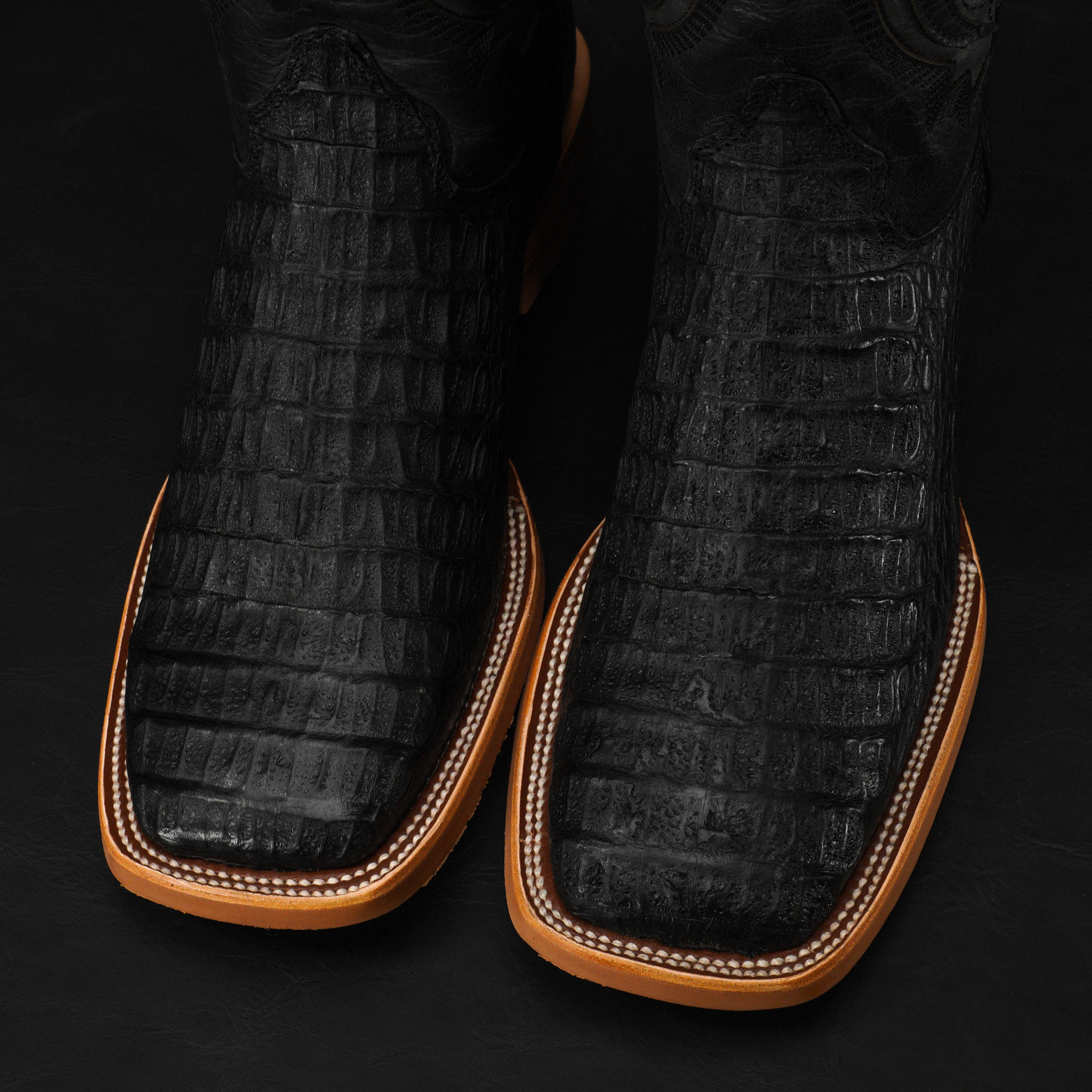 AUTHENTIC Black Caiman Hornback – Arena Square Toe
