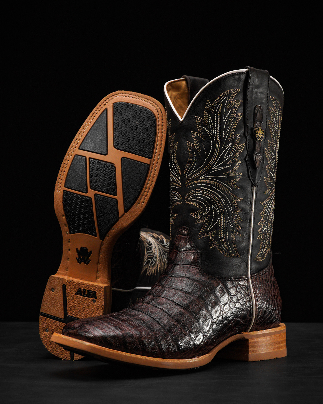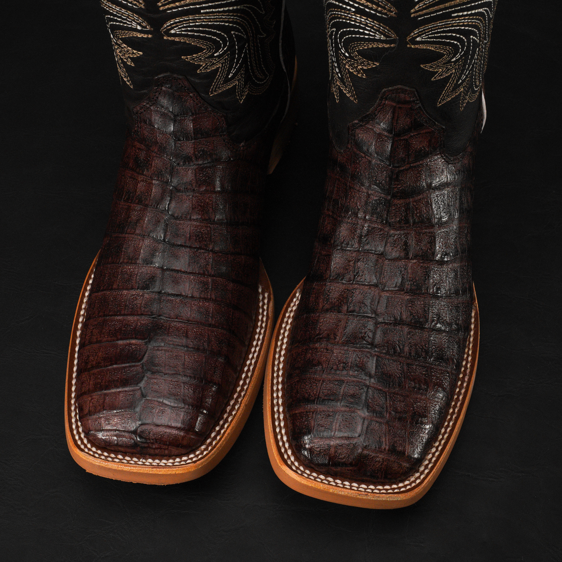 AUTHENTIC Brown Caiman Belly – Square Toe