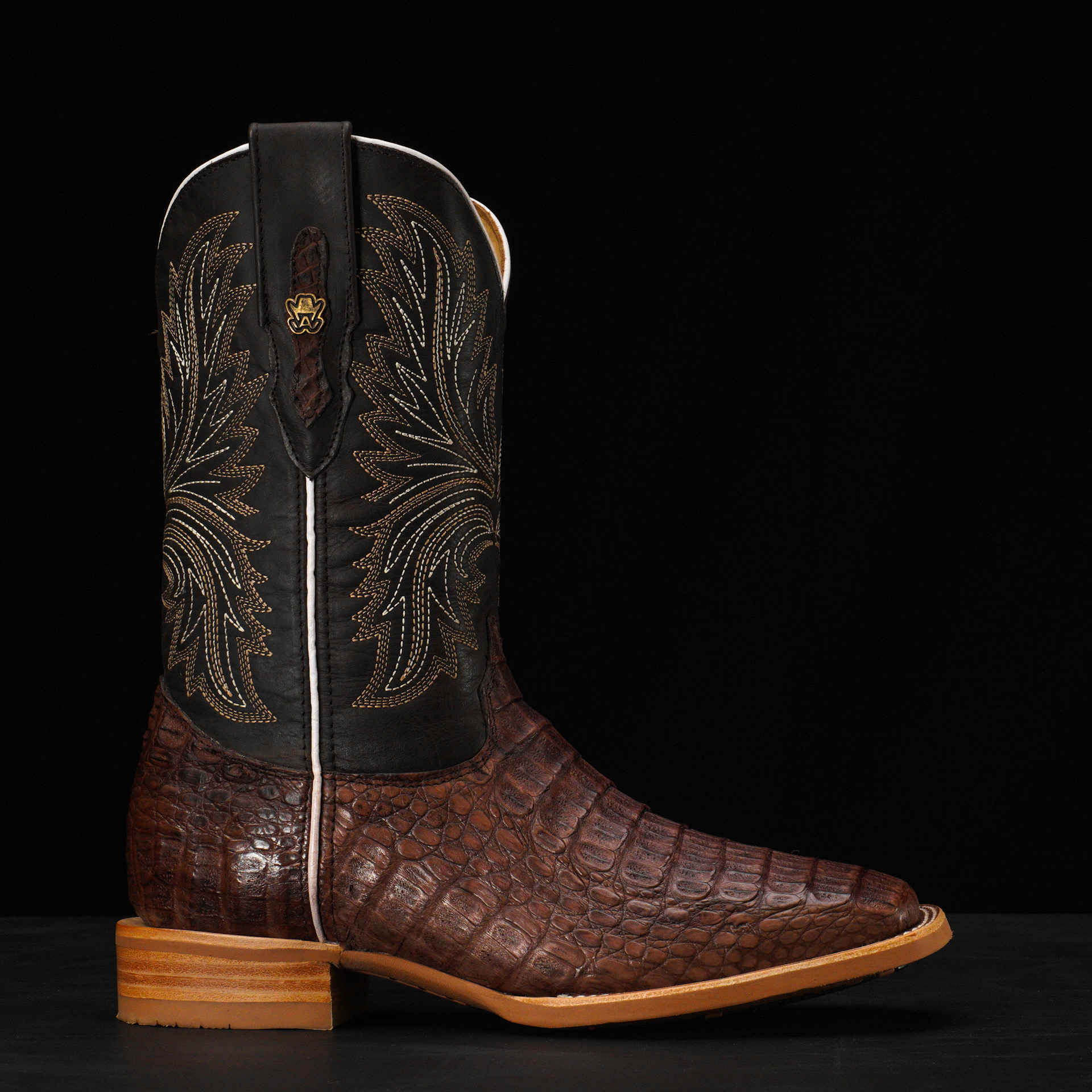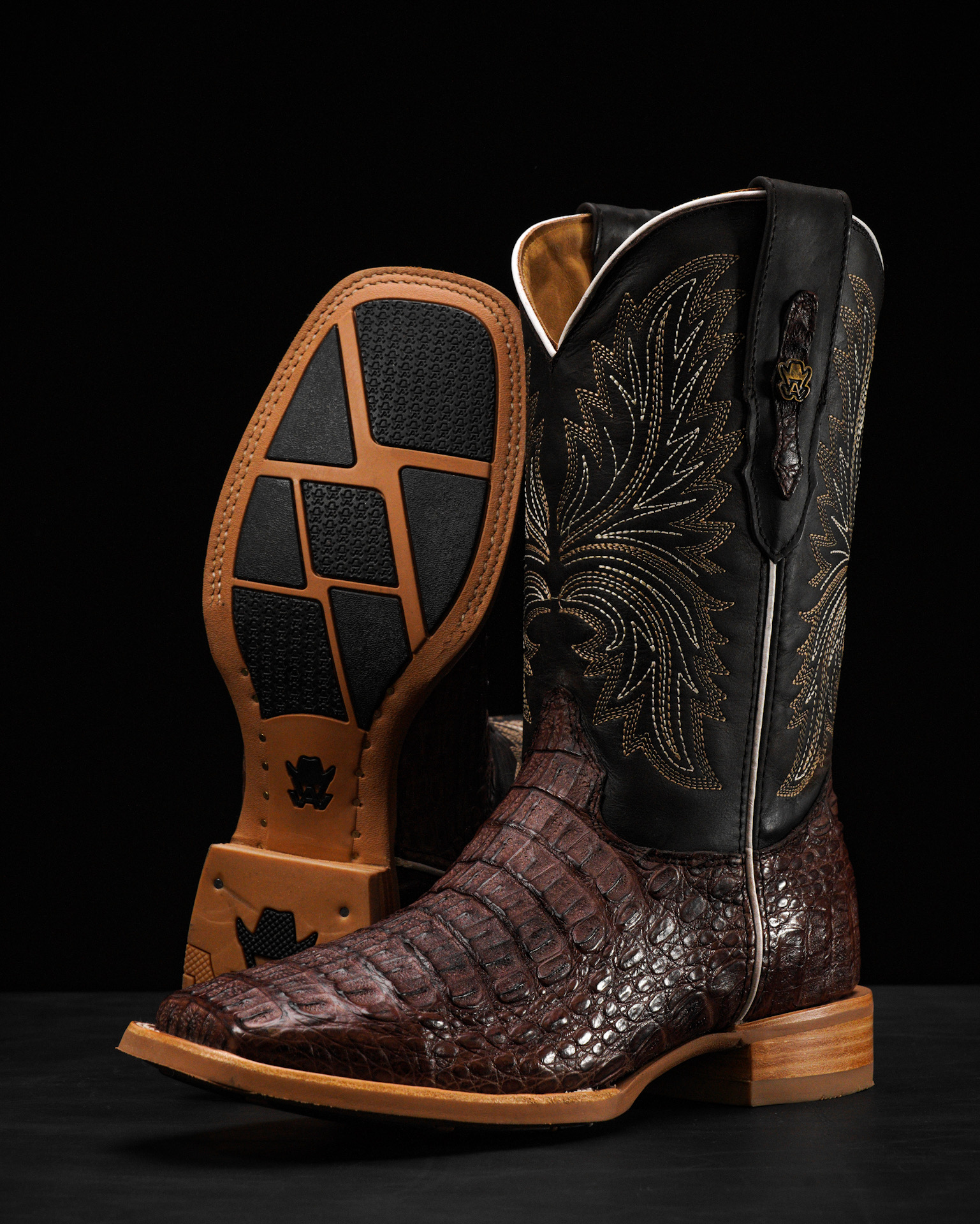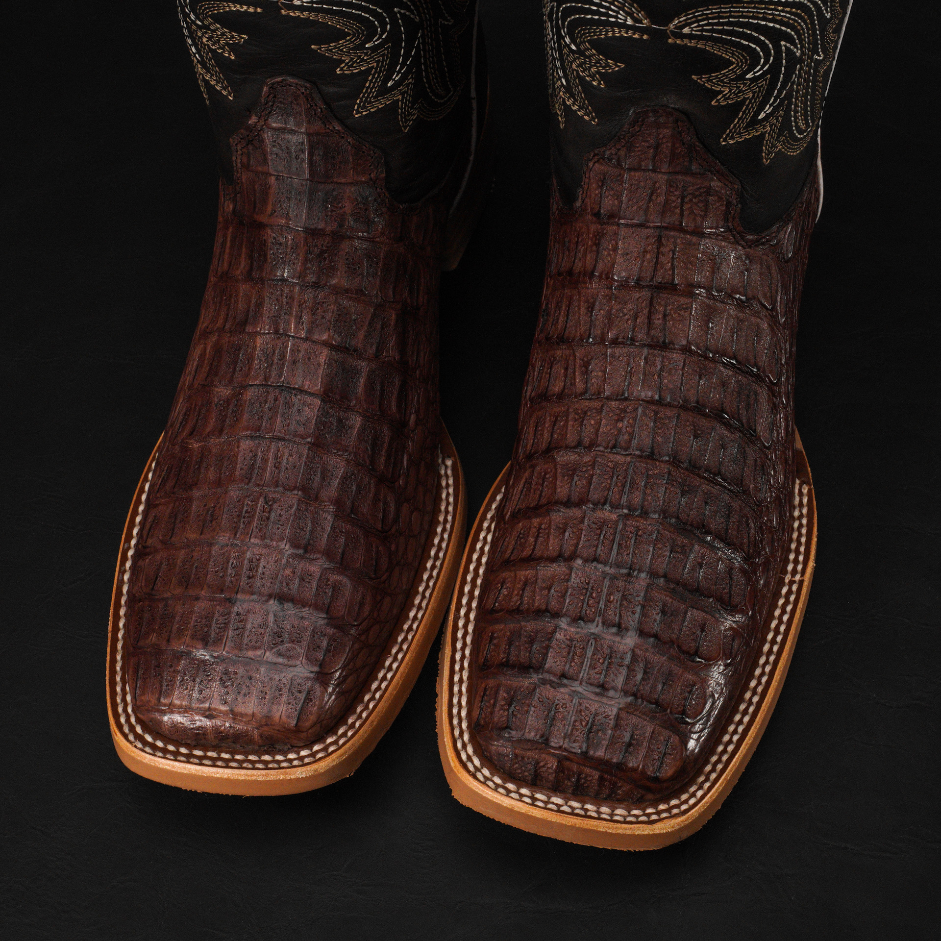 AUTHENTIC Brown Caiman Hornback – Square Toe