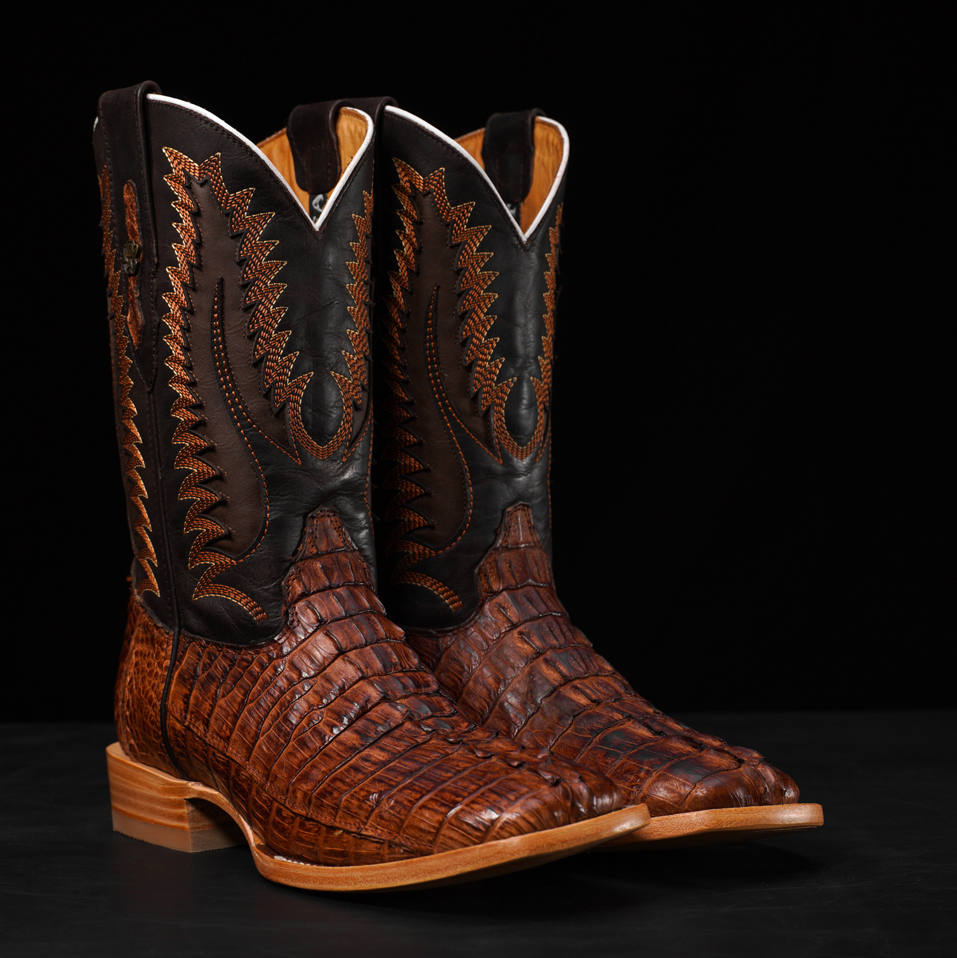 AUTHENTIC Cognac Caiman Tail – Arena Square Toe