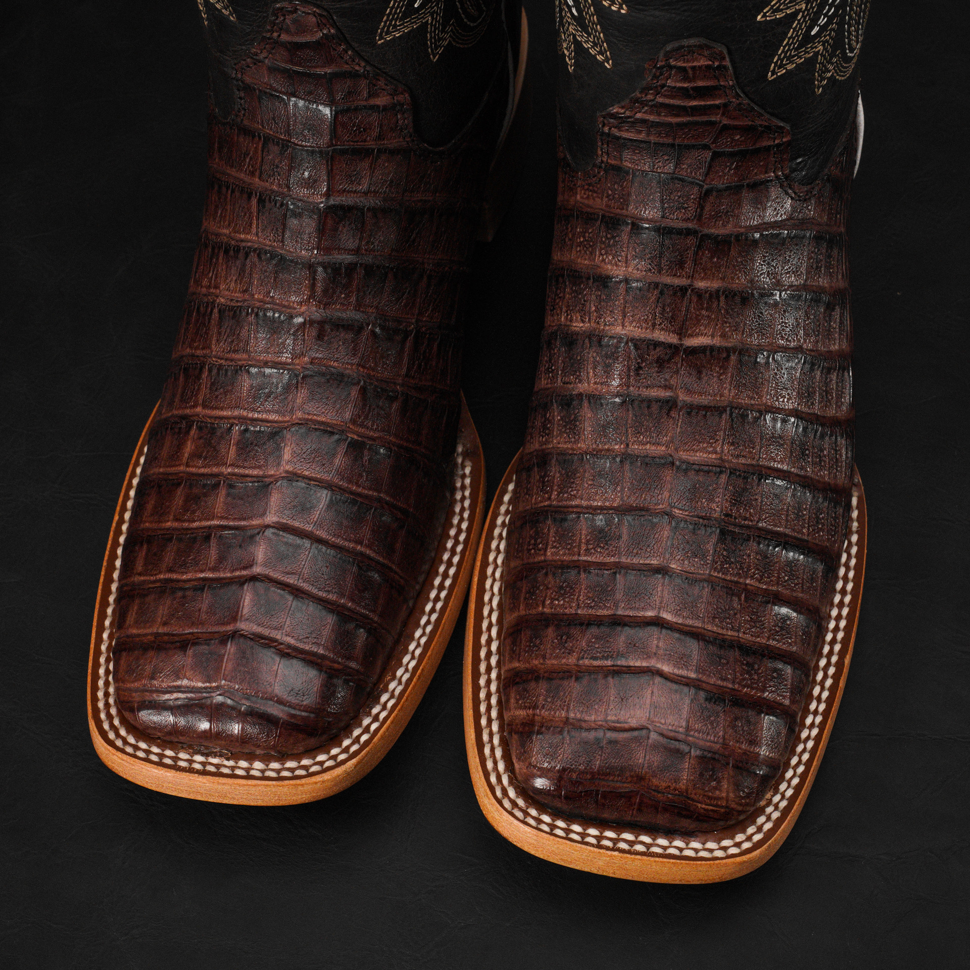 AUTHENTIC Brown Caiman Belly – Square Toe