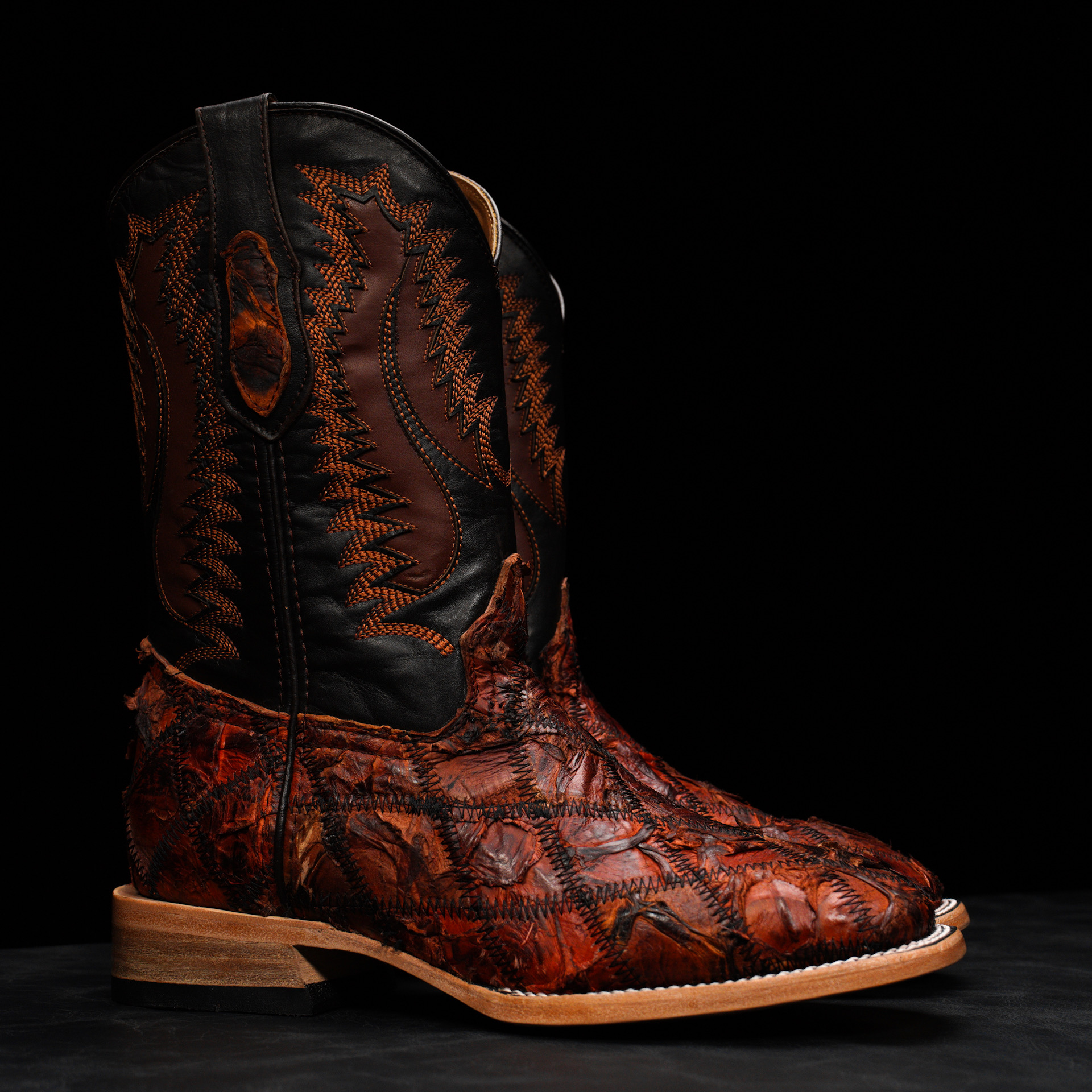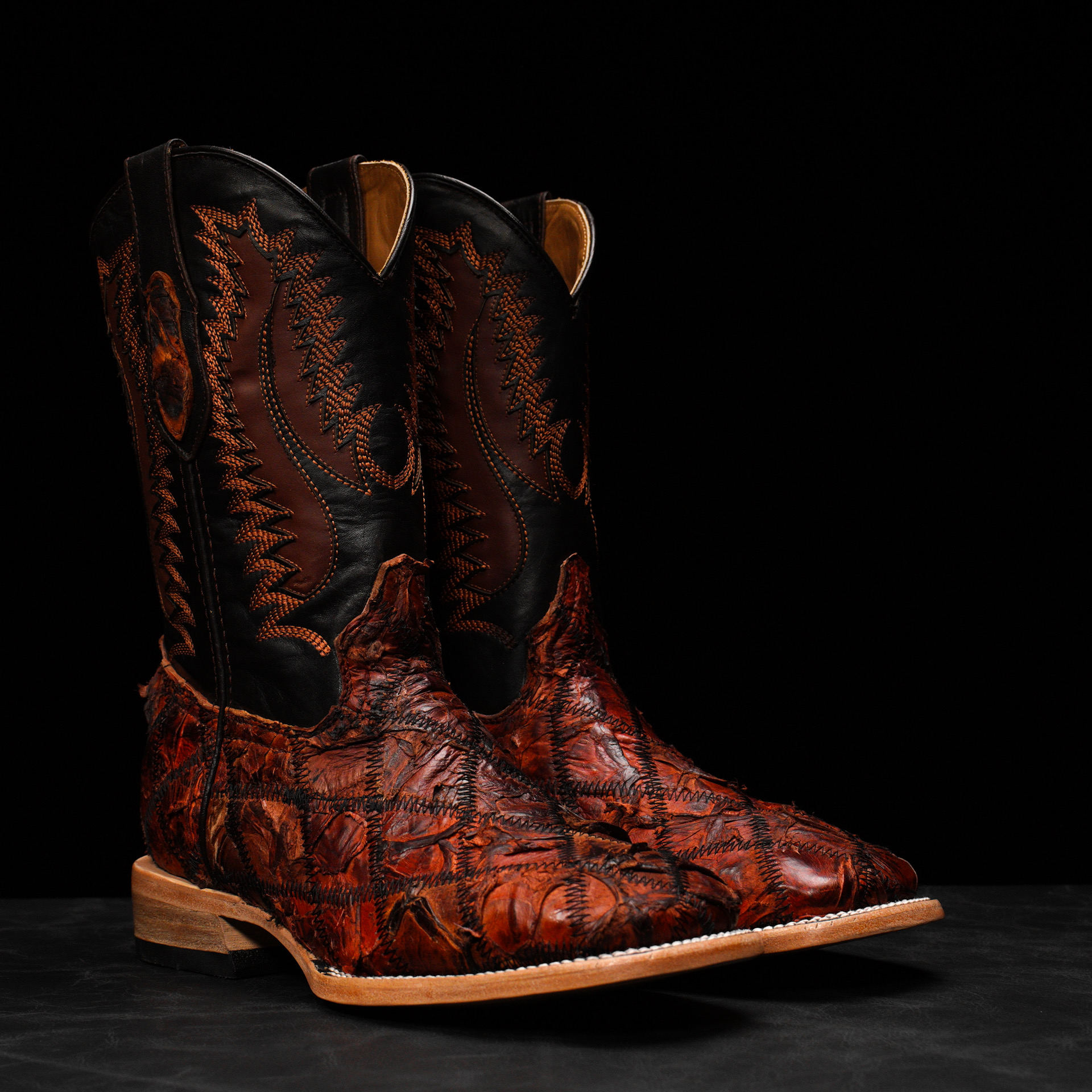 AUTHENTIC Patch Work Cherry Pirarucu – Square Toe