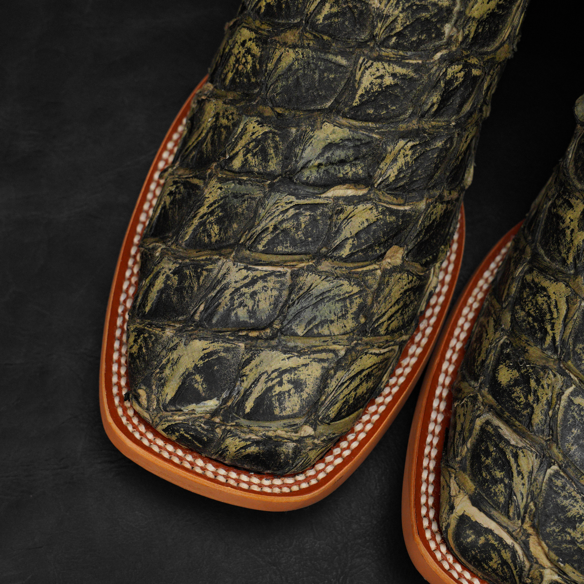 AUTHENTIC Olive Green Pirarucu – Square Toe