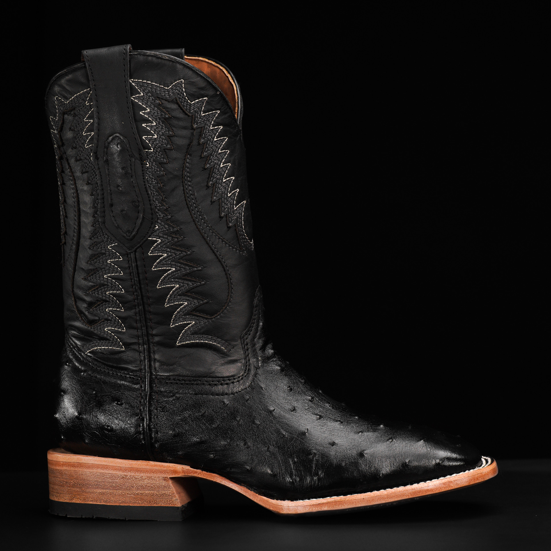 AUTHENTIC Black Ostrich – Square Toe