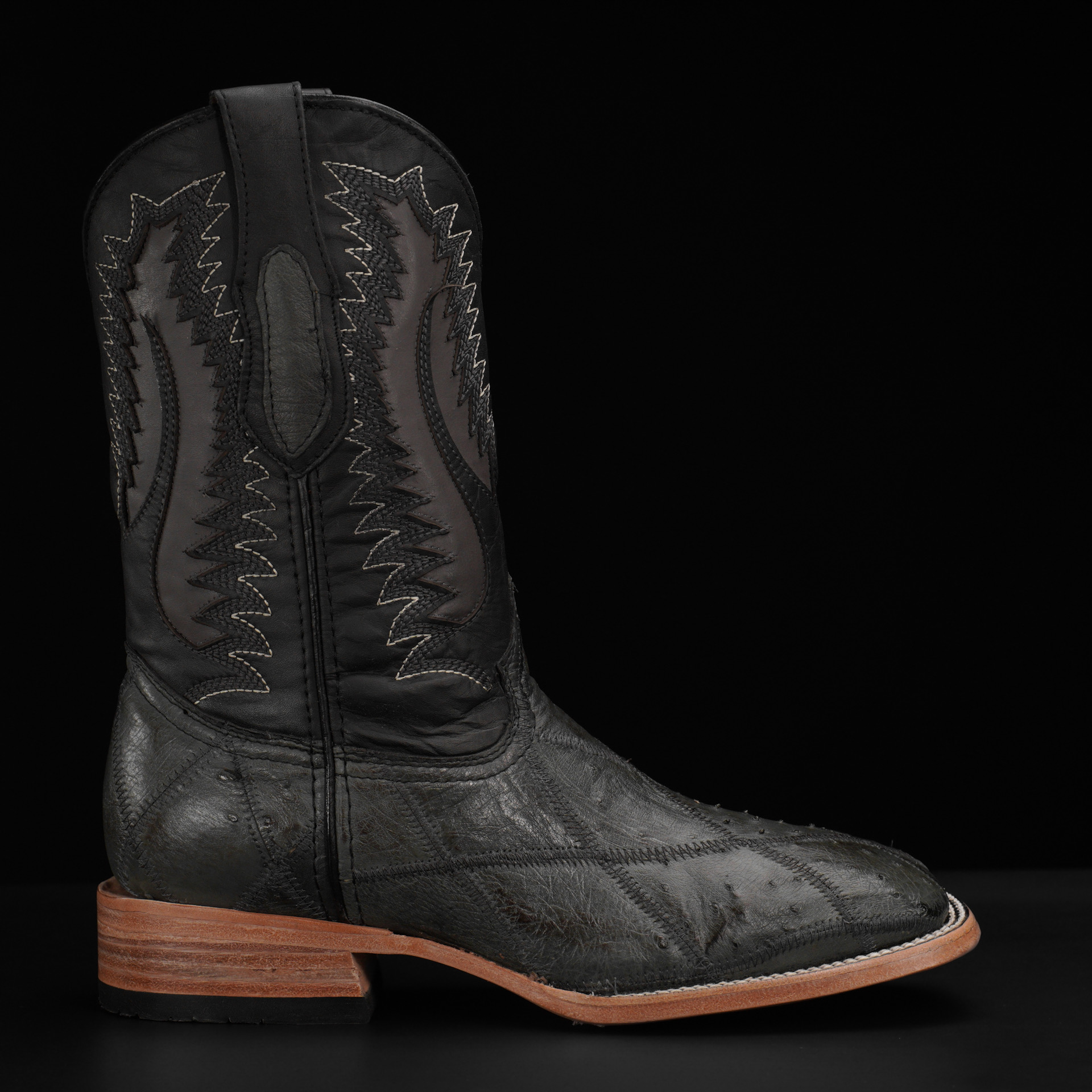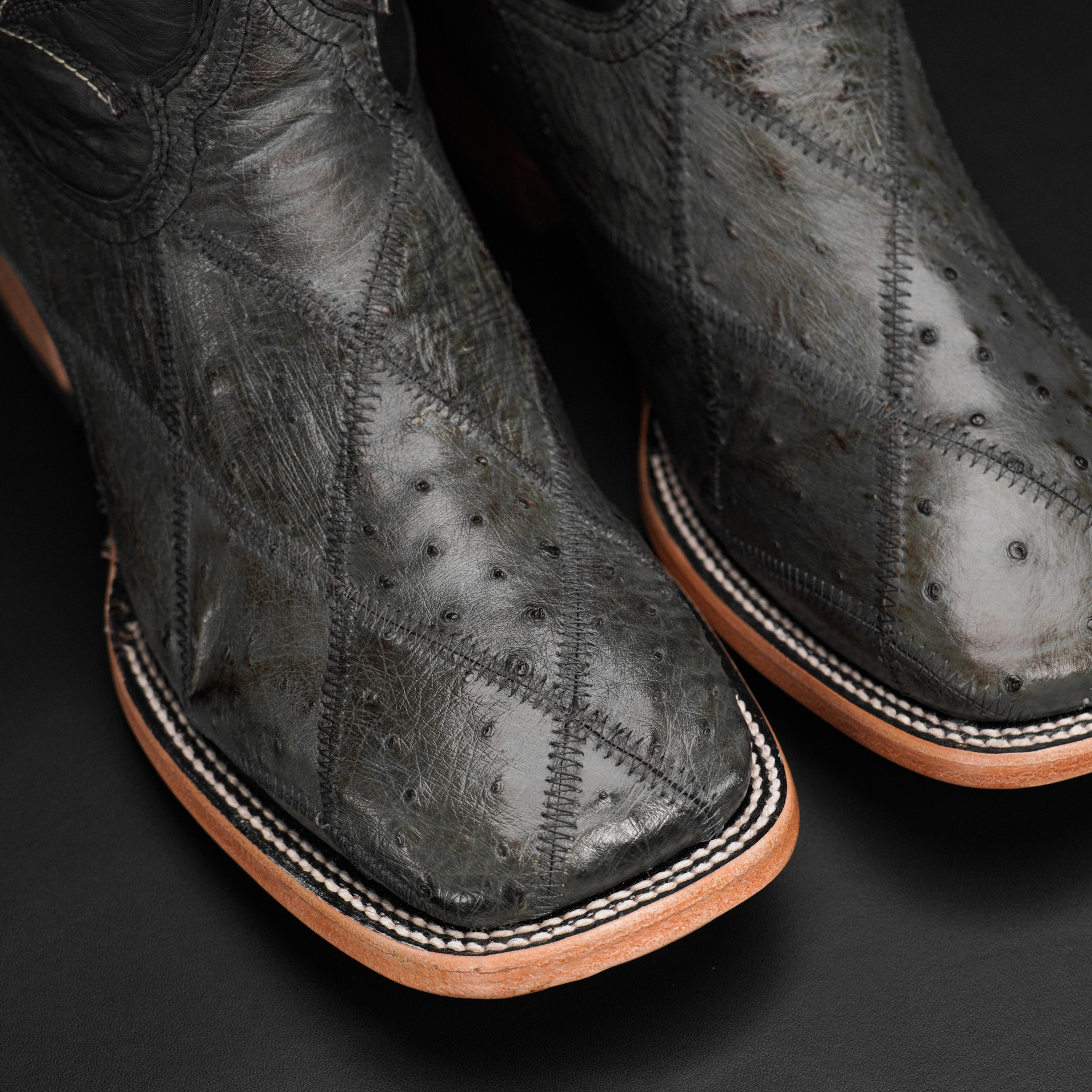 AUTHENTIC Gray Patch Work Ostrich – Square Toe
