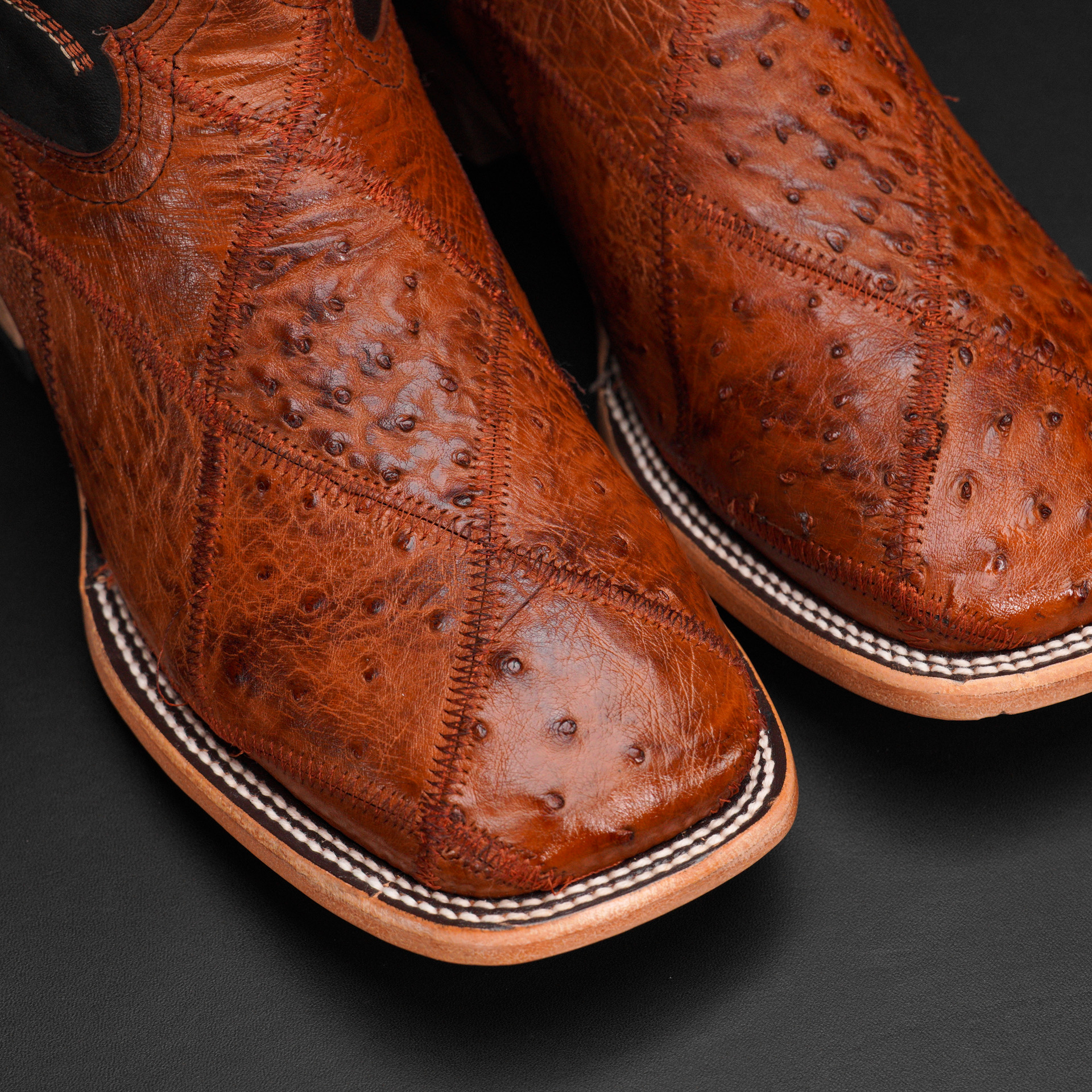 AUTHENTIC Patch Work Cognac Ostrich – Square Toe