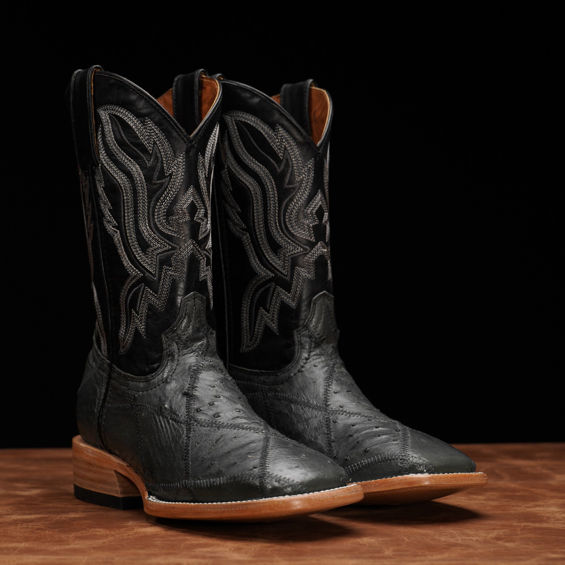 AUTHENTIC Patch Work Gray Ostrich – Square Toe