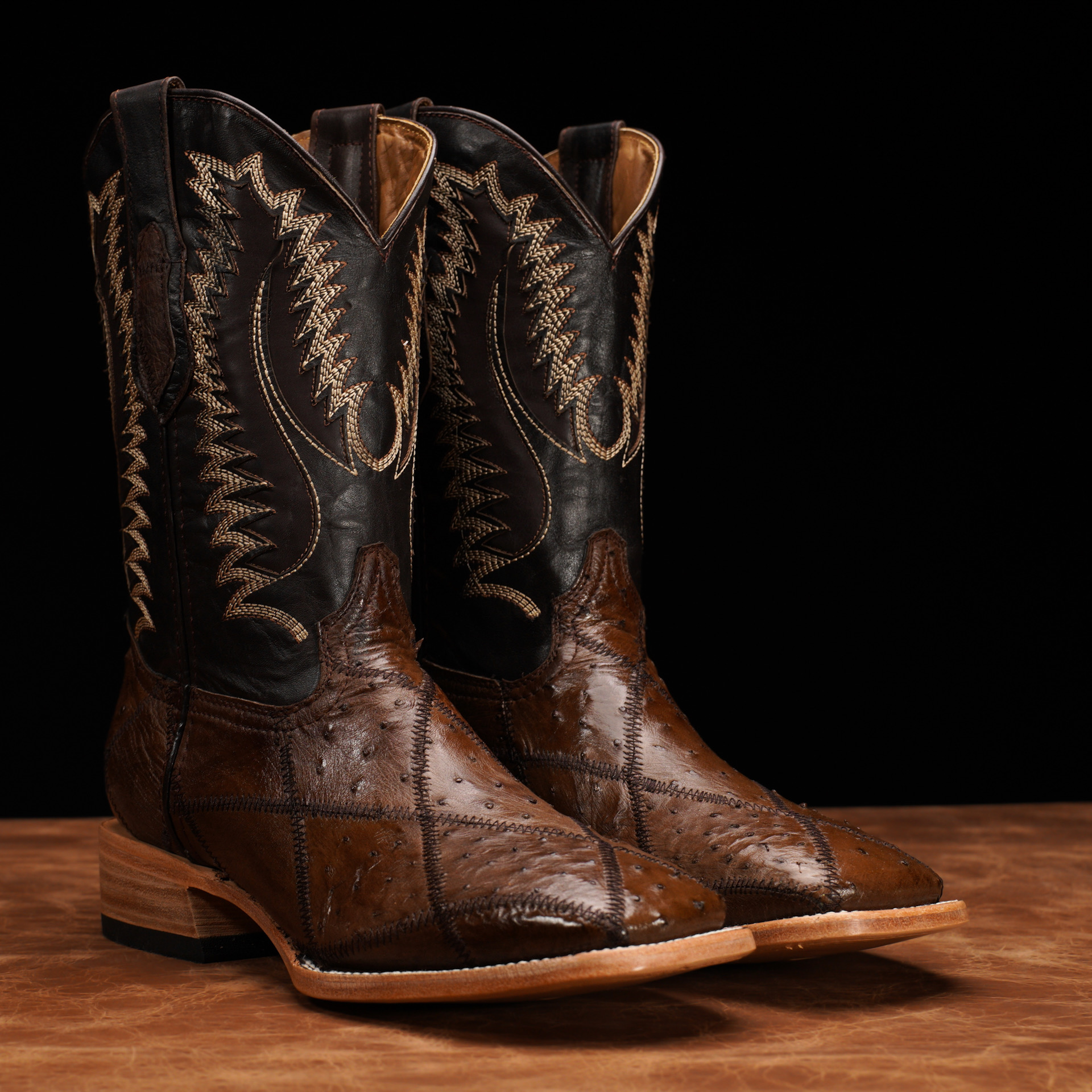 AUTHENTIC Patch Work Brown Ostrich – Square Toe