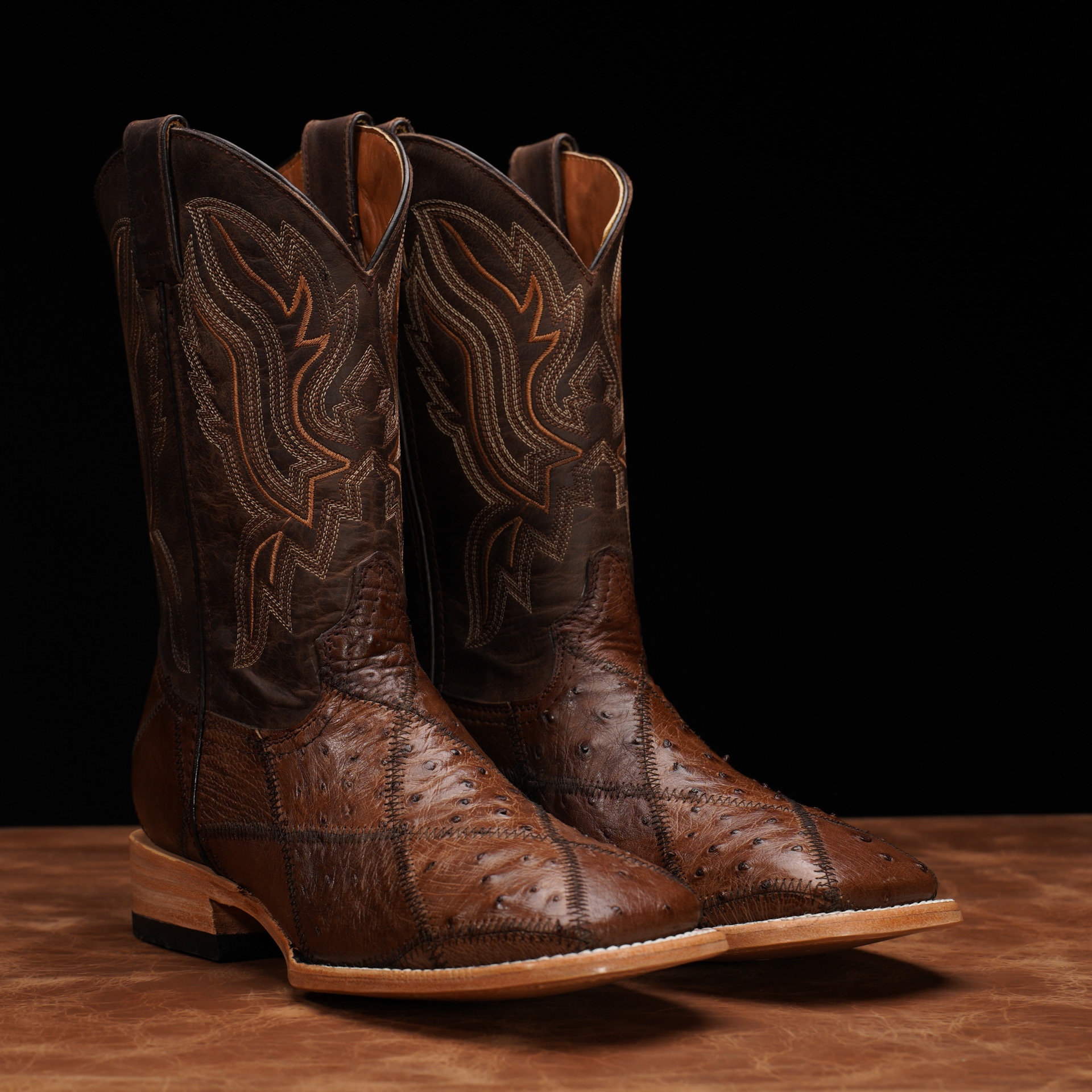 AUTHENTIC Patch Work Brown Ostrich – Square Toe