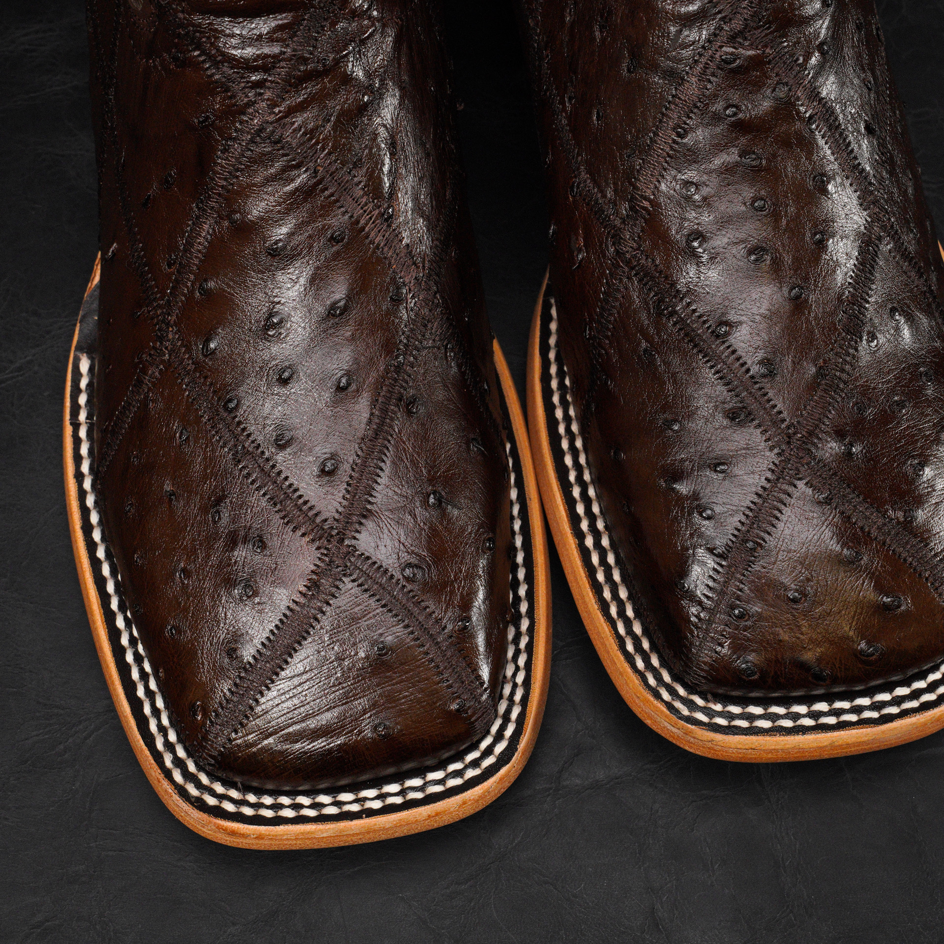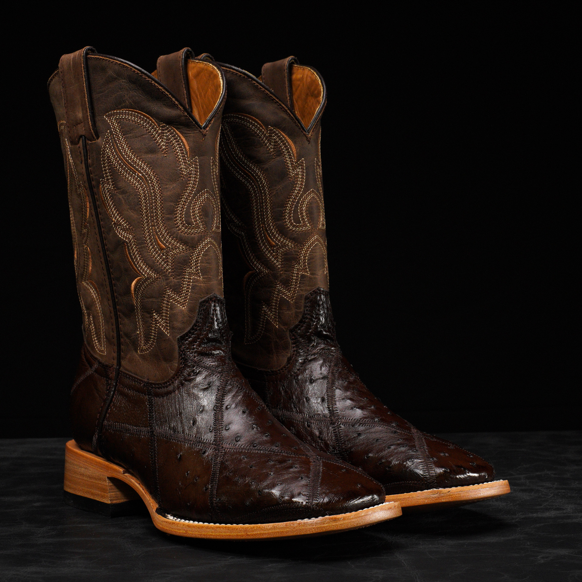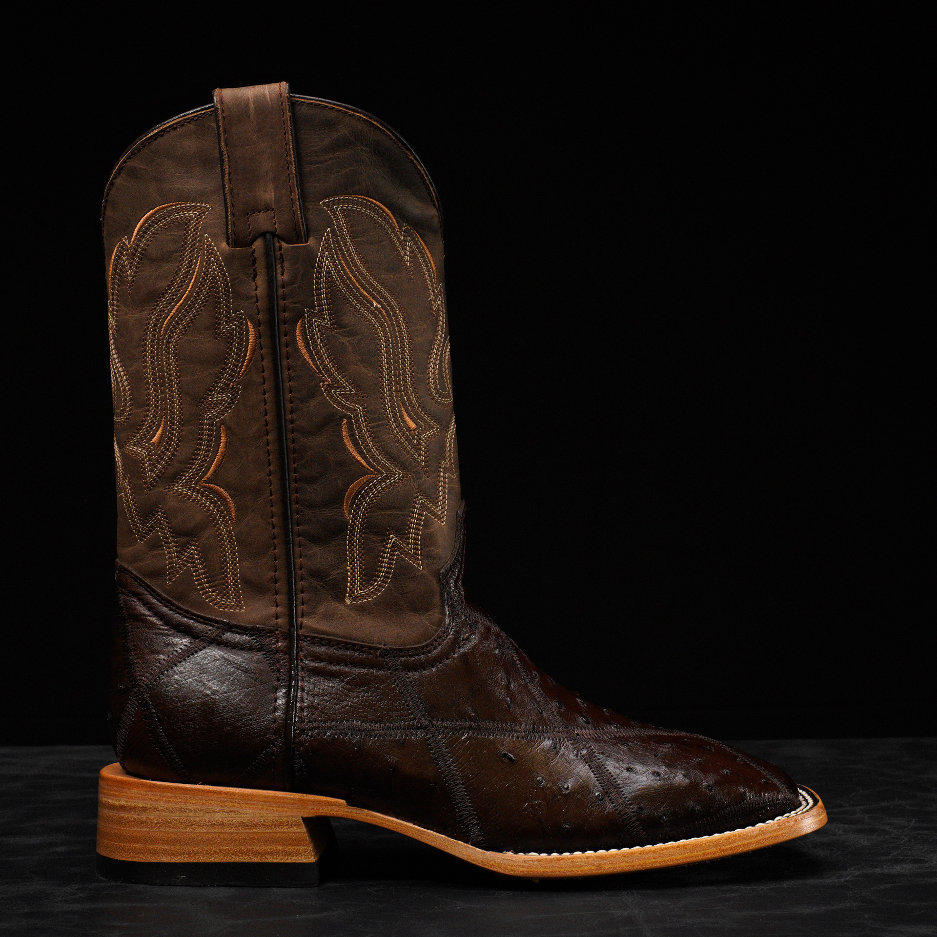 AUTHENTIC Brown Patch Work Ostrich – Square Toe