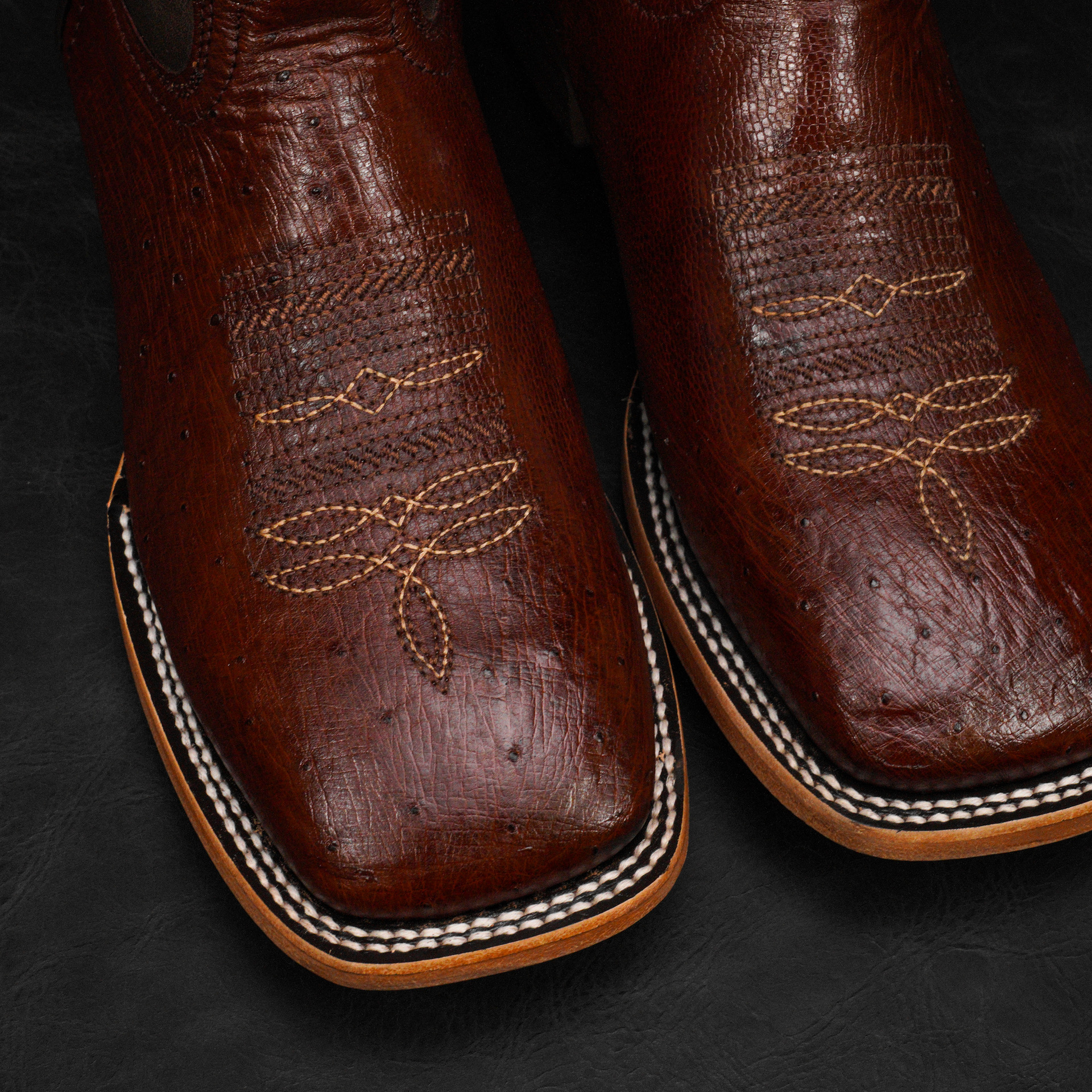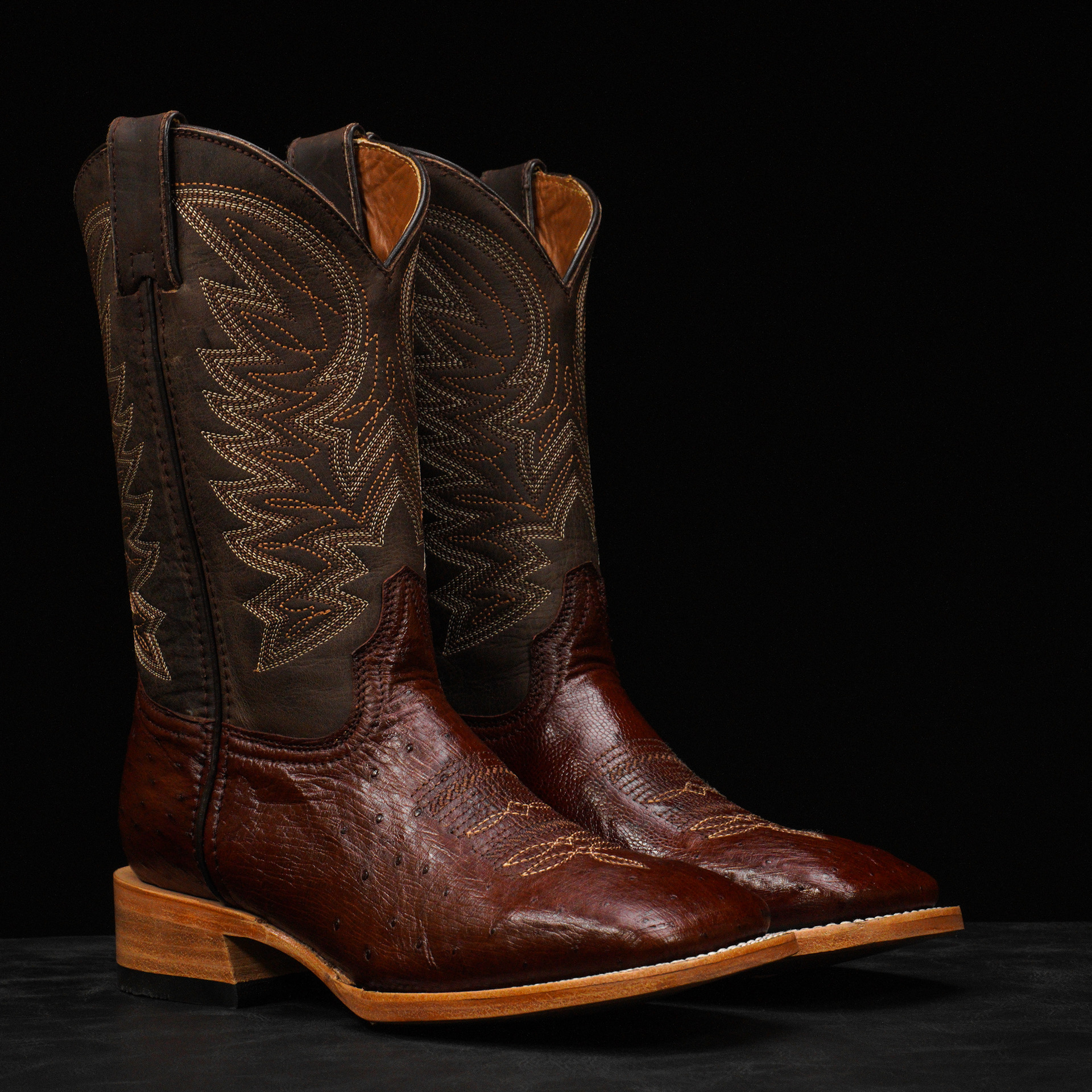 AUTHENTIC Brown Belly Ostrich – Square Toe