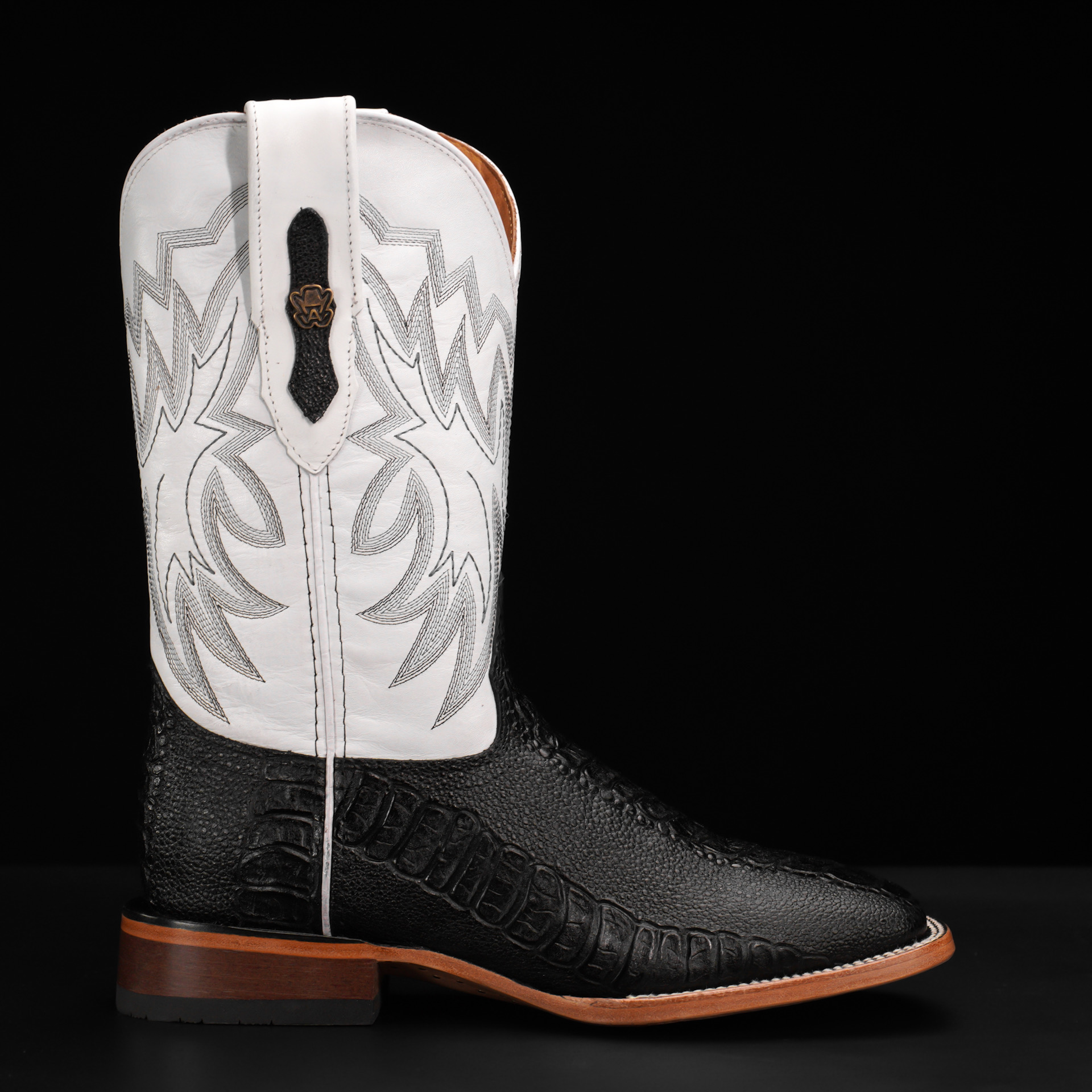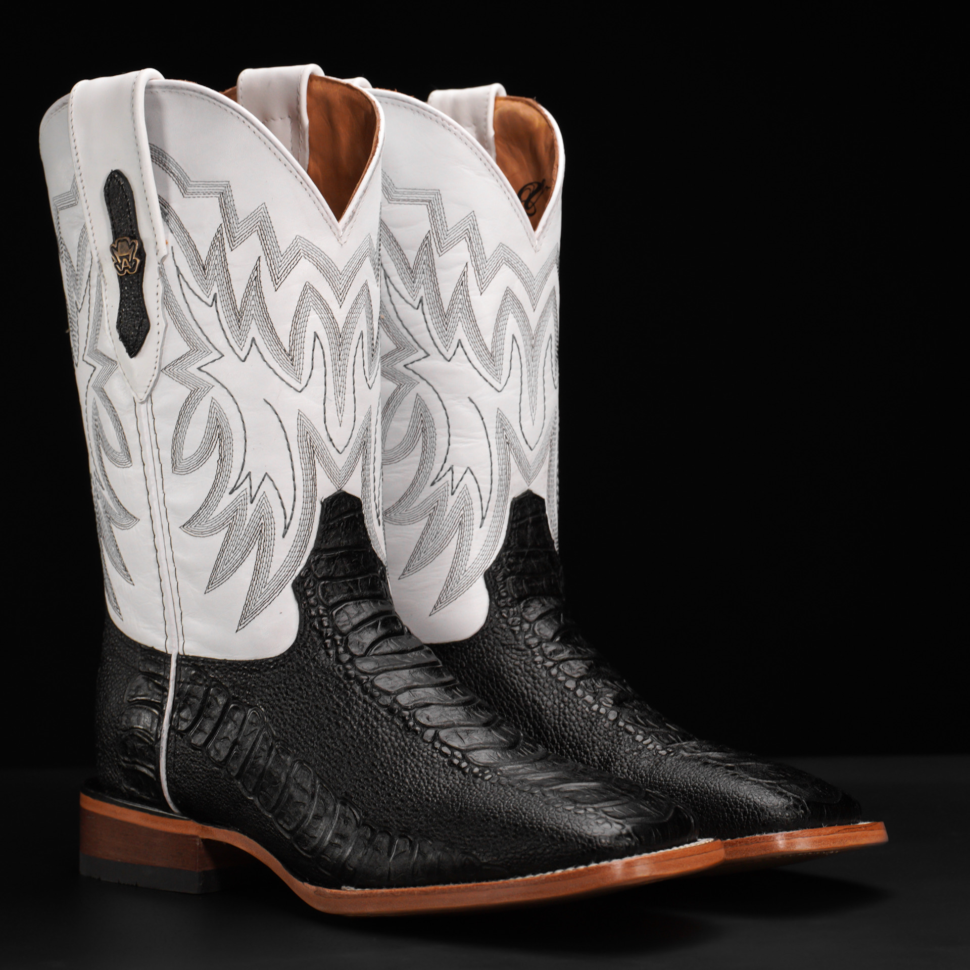 Black Ostrich Leg – Square Toe
