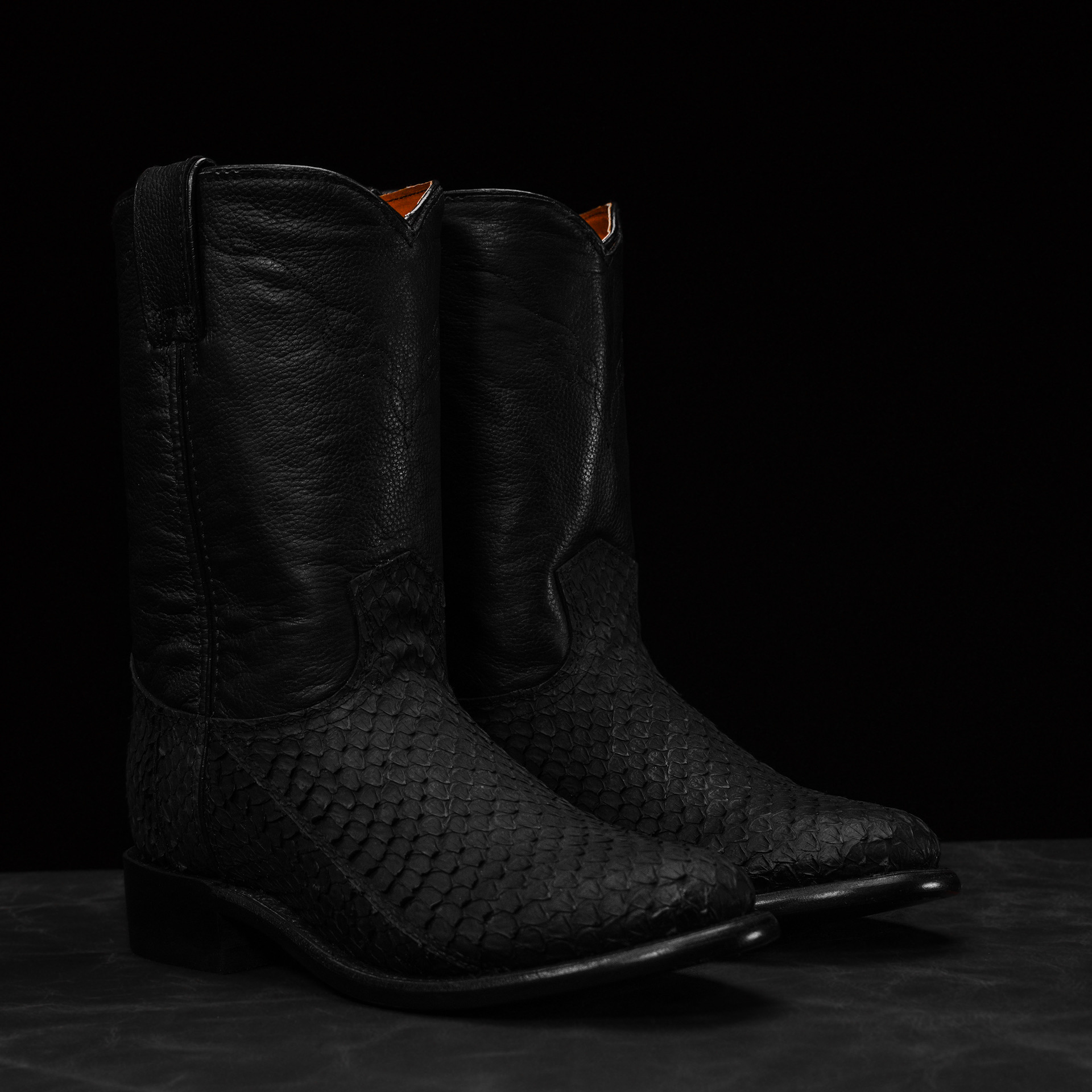 Matte Black Rattlesnake – Round Toe