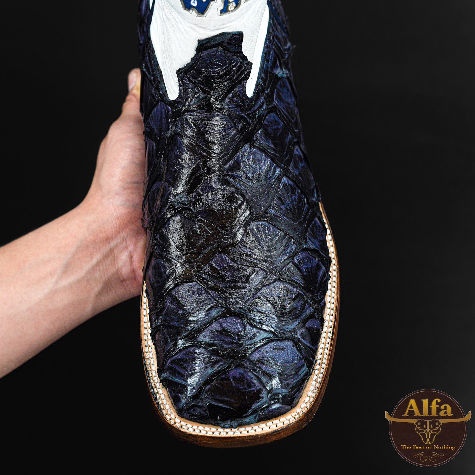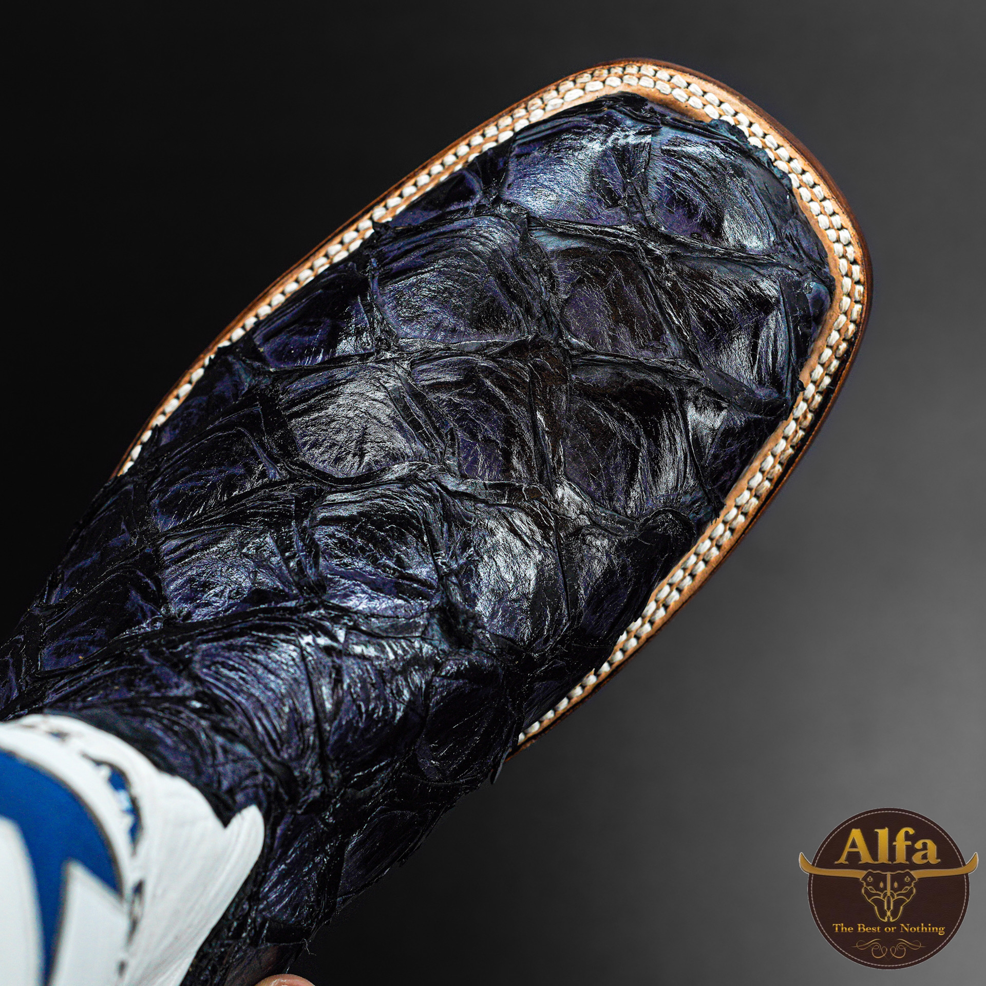 Genuine Navy “Cowboys” Pirarucu – Square Toe (FREE Belt & Wallet)